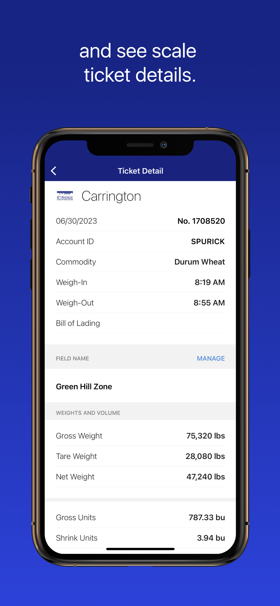 The 8th Avenue Food & Provisions app is an essential mobile solution that connects your operation to your grain facility, providing real-time, actionable information to help you manage and grow your business.