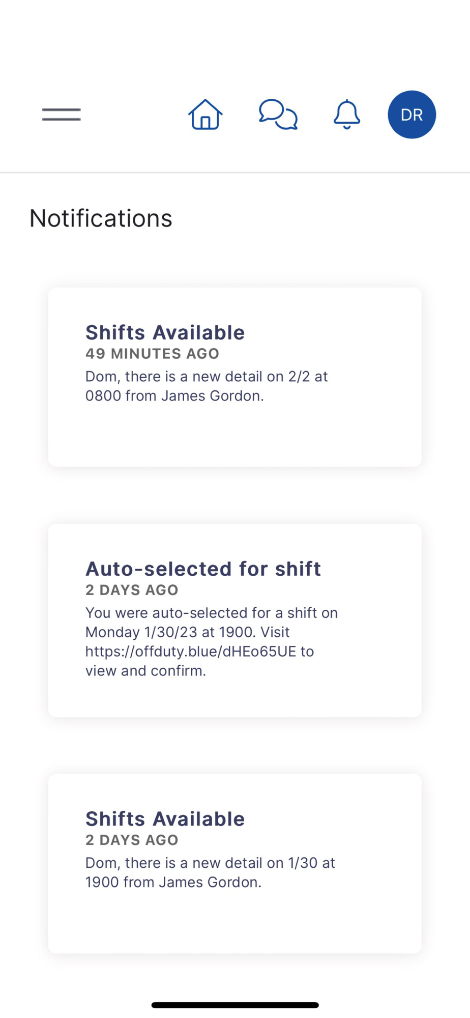 The Off Duty Blue Officer App allows officers to find details and manage their schedules easier than ever. Now with push notifications and in-app chat.