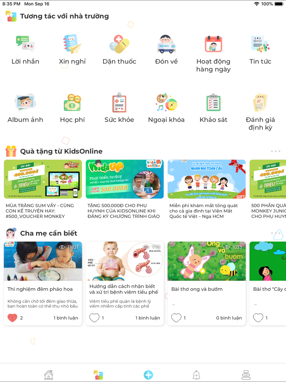 - Giúp phụ huynh dễ dàng quản lý các hoạt động trên lớp của bé.