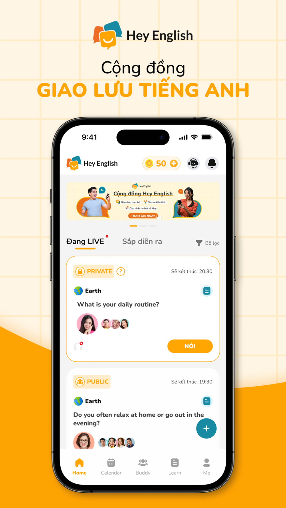 Hey English môi trường thực hành giao tiếp luyện nói tiếng Anh vui vẻ, thoải mái với các bạn học thân thiện. Chủ đề giao lưu gần gũi giúp bạn tự tin luyện nói tiếng Anh mỗi ngày.