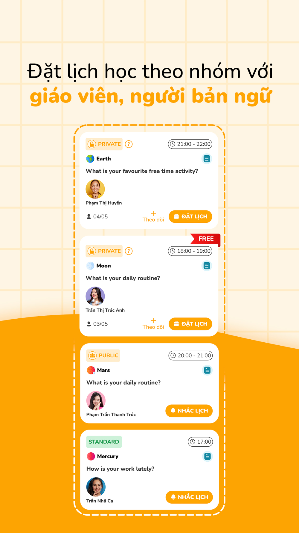 Gặp gỡ & kết bạn với những bạn học thân thiện có cùng sở thích để “vừa tám chuyện vui vẻ - vừa rèn luyện nói tiếng Anh”.