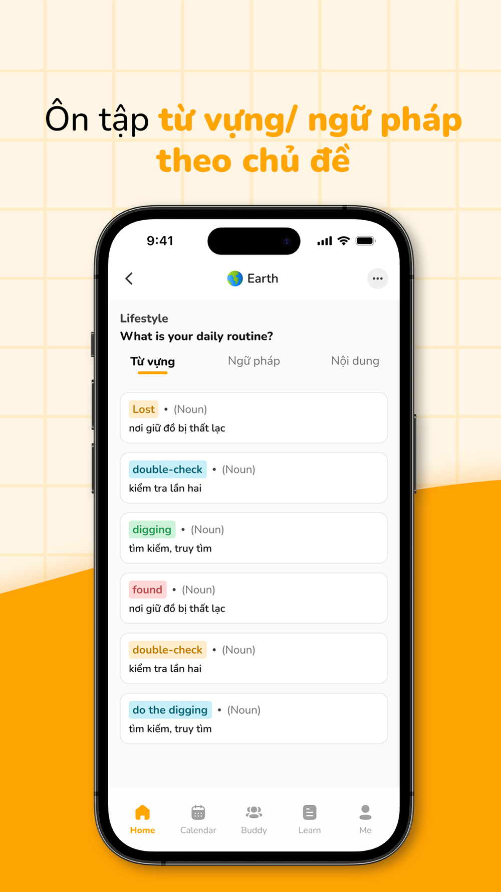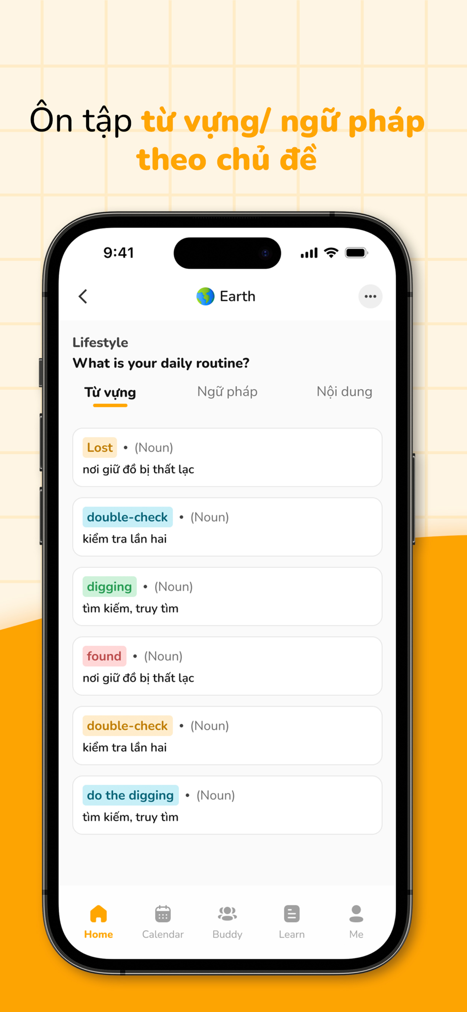 Mỗi chủ đề thực hành theo lớp học, Phòng nói đều được bổ sung mẫu câu, ngữ pháp và từ vựng tiếng Anh theo chủ đề. Bạn có thể lưu nội dung ngữ pháp và từ vựng yêu thích, sau đó ôn lại bài trong mục Sổ tay!