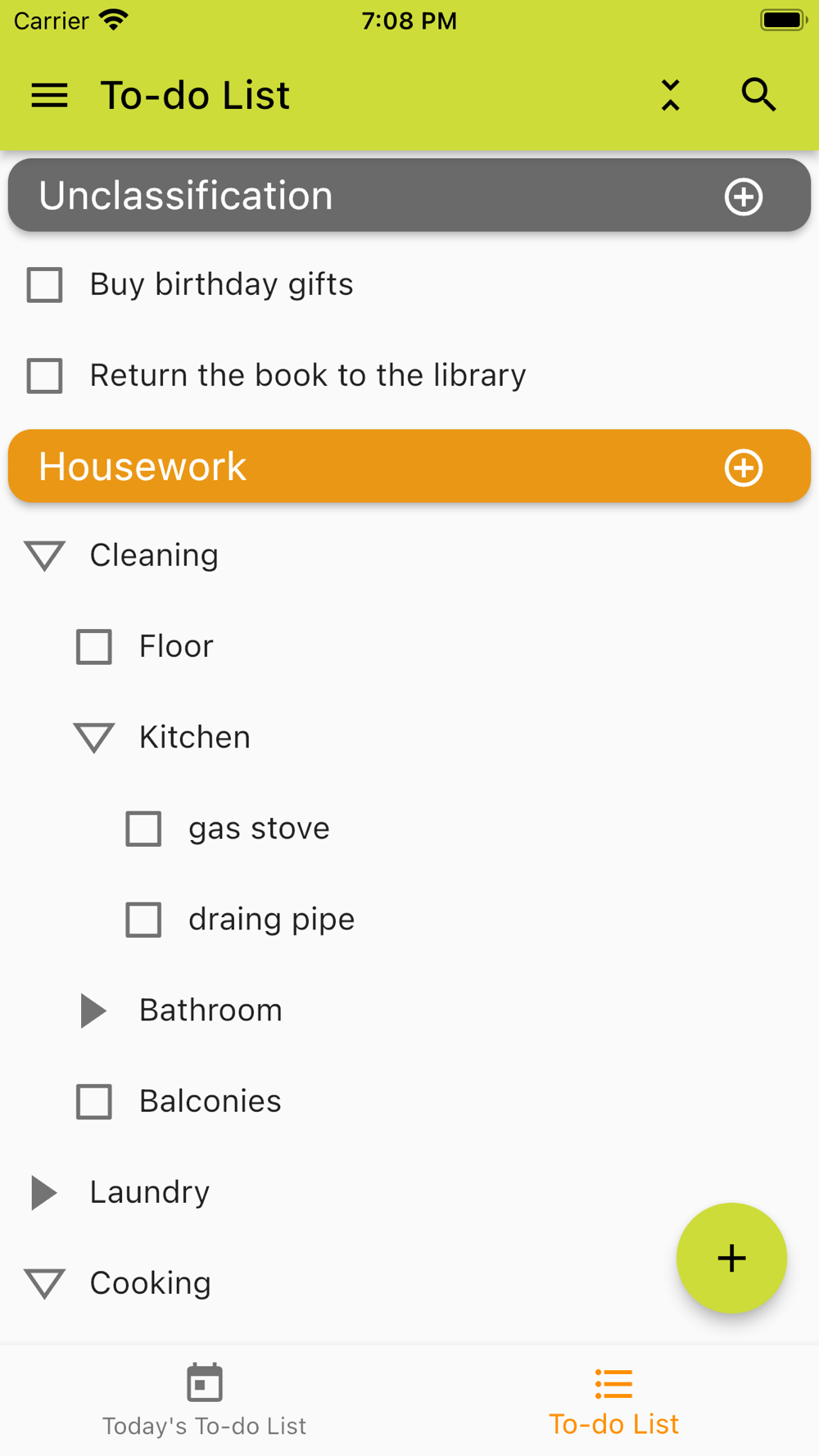 "To-do List" is a list that has all tasks other than "Today's to-do list".