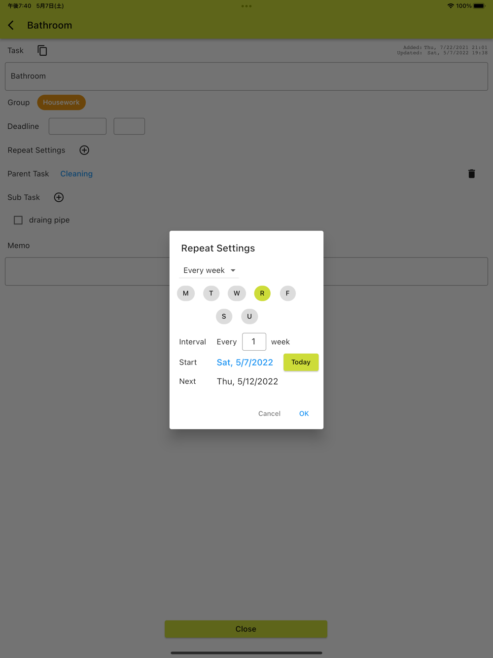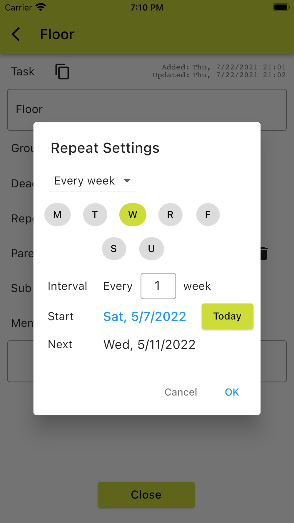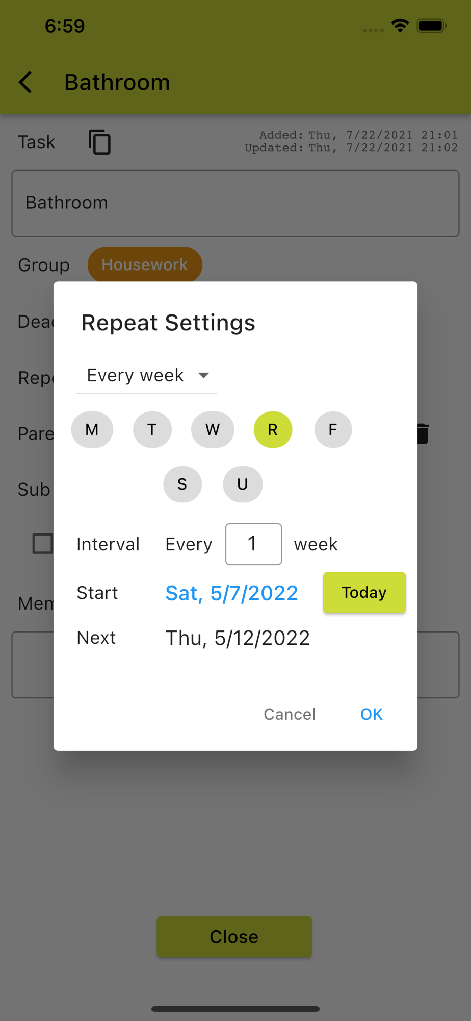 Once you have registered your repeat settings, you don't have to worry about them until they are added to your "Today's To-do List".