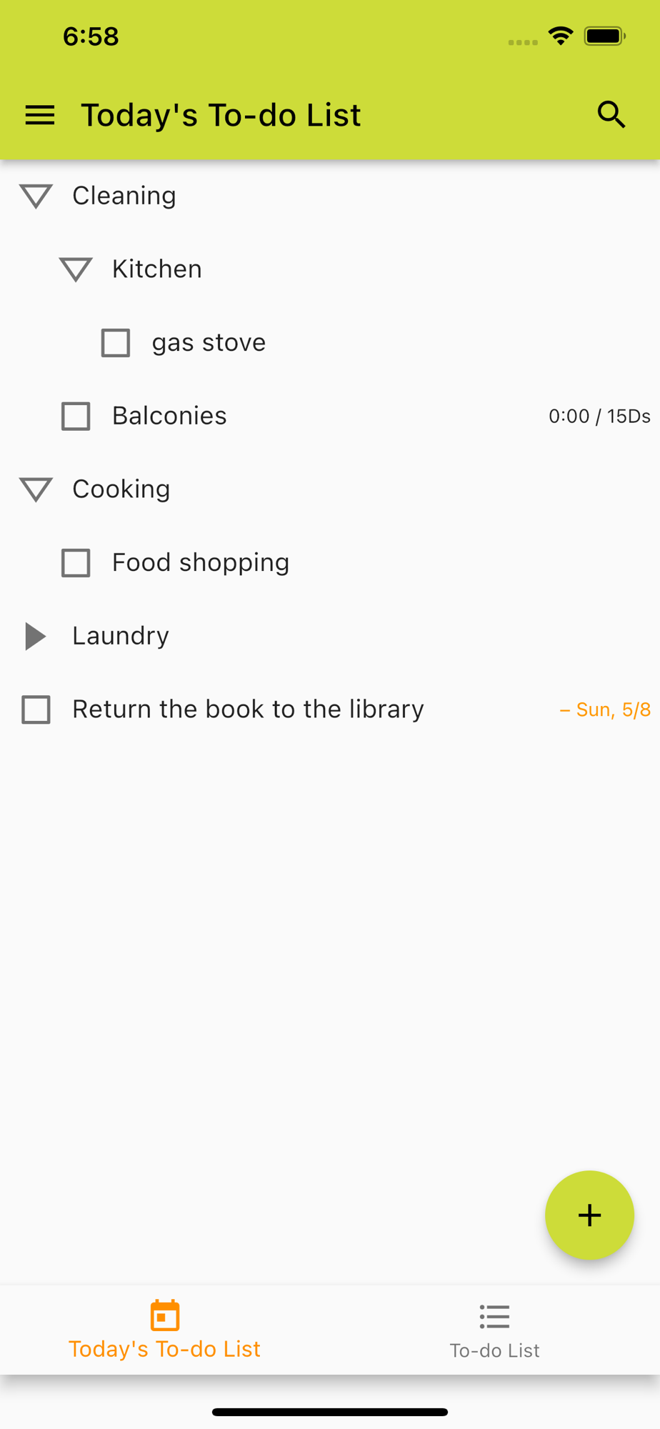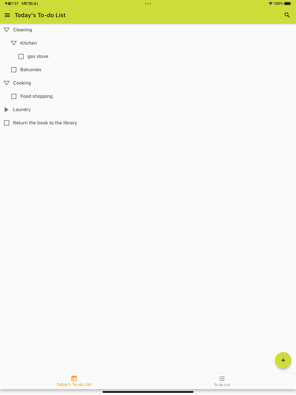 If you don't want to see the child tasks, you can collapse them by tapping the ▽ button of the parent task.