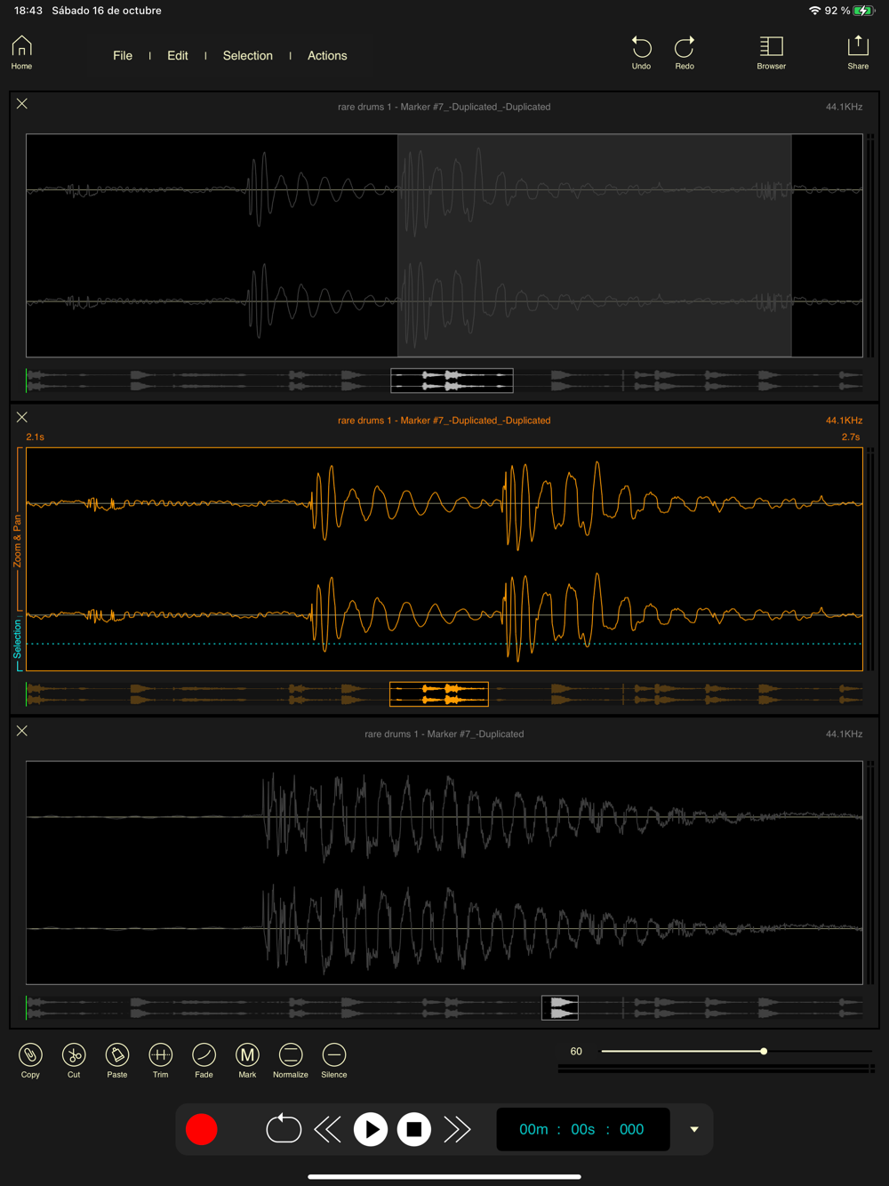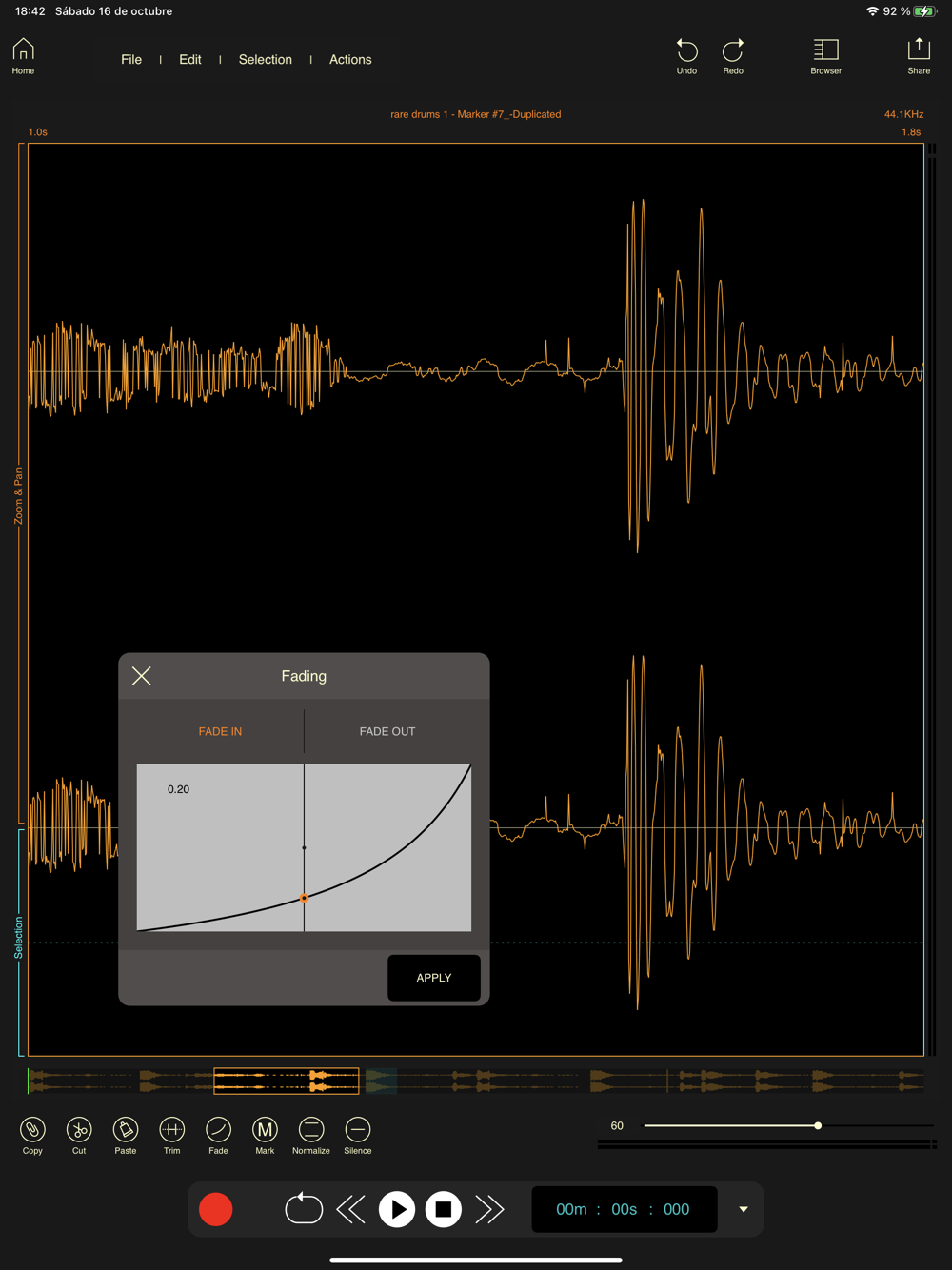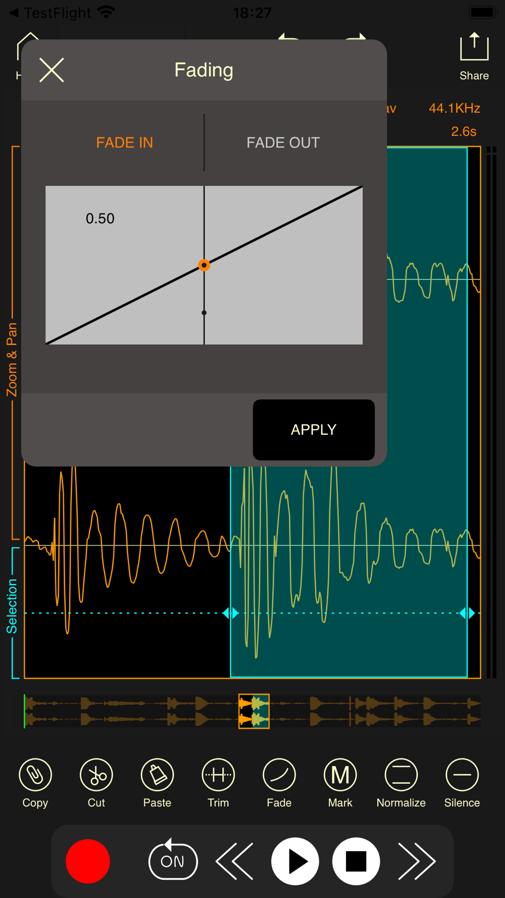 Use the built-in audio editor to cut, trim, apply fades to the audio file: