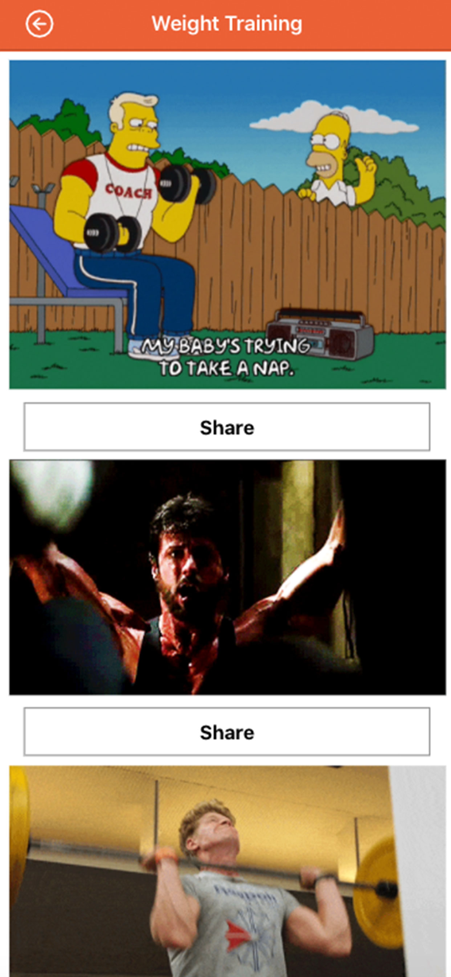We have all the gym gifs you need and you can share them in seconds across iMessage, Whatsapp and all other social media in just a few taps.
