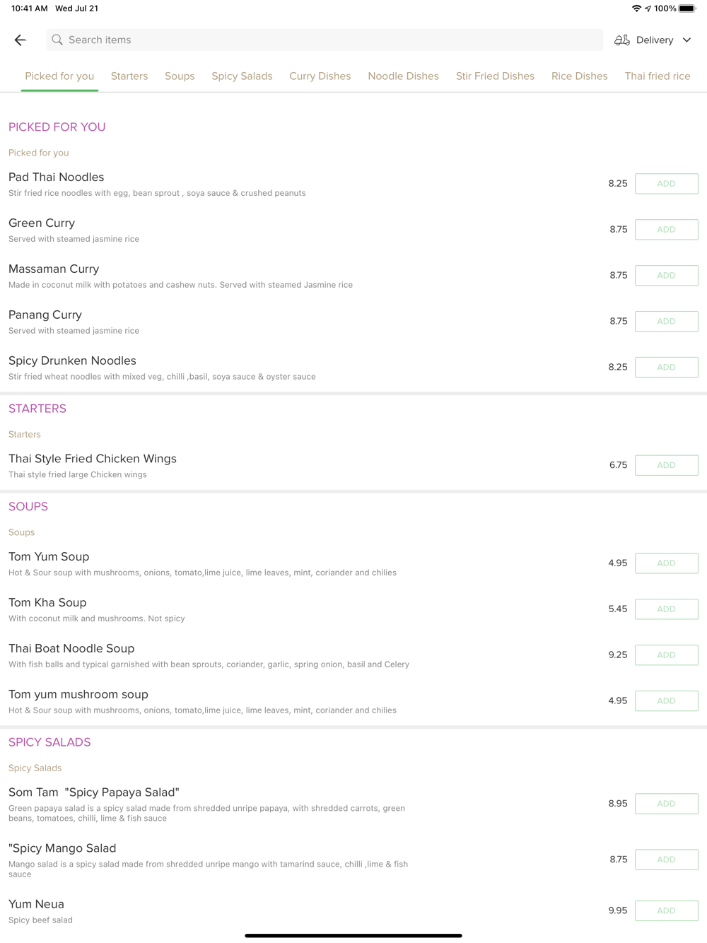 You can now browse our app to see our wide range of authentic and traditional Thai dishes that are available. Our chefs are well known for their excellent Thai cuisine, when it comes to food we are experts in choosing the color, aroma, flavour and taste. We believe food is not only taste but also a work of art for its aesthetic value.