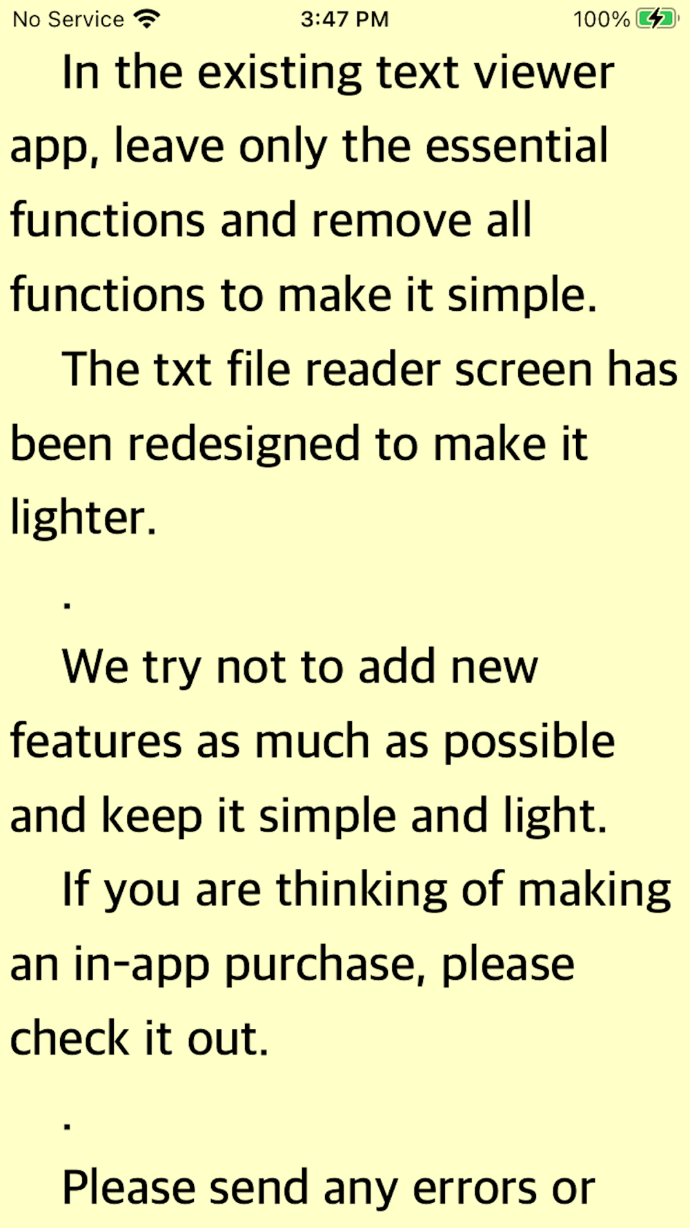 - Basic functions : font, font size, space (left and right), brightness, night mode, search, last file view, alignment, space (top and bottom), character spacing