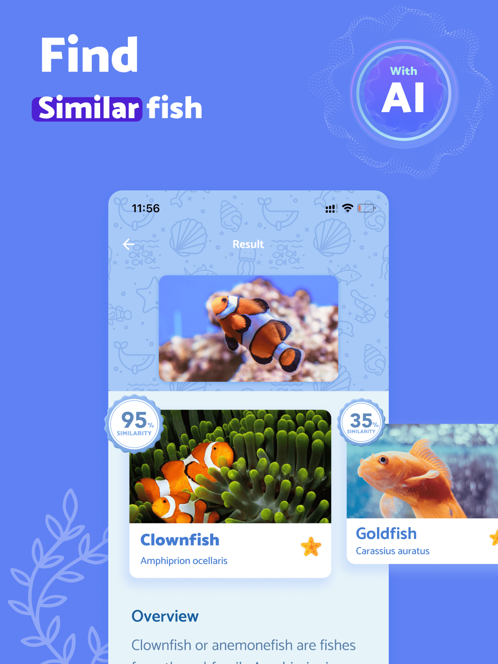 Just take or upload a photo of fish, FishScan can quickly identify the fish and show you the detailed information. The powerful AI fuzzy search function can also help you find other similar fish.