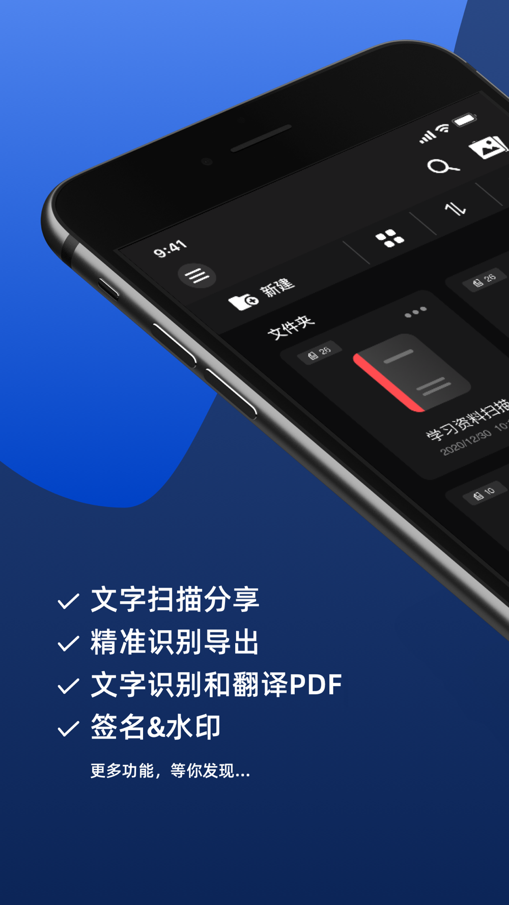 图片转文字是一款手机扫描文字识别软件,可以文件识别和文件扫描,实现图片提取文字,扫描证件和文件等功能。扫描包括文件扫描、纸质文件扫描、证件扫描、图片扫描等,可生成高清PDF进行水印、签名、色彩的编辑和导出。快速识别图片里的文字进行翻译、编辑、导出。