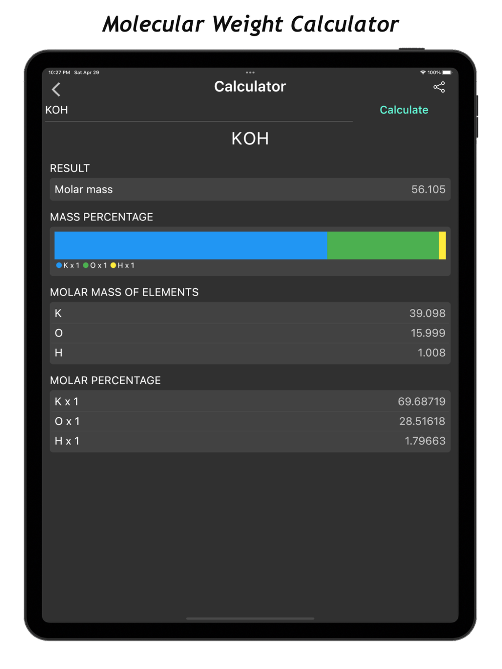 +  Molar mass Calculator