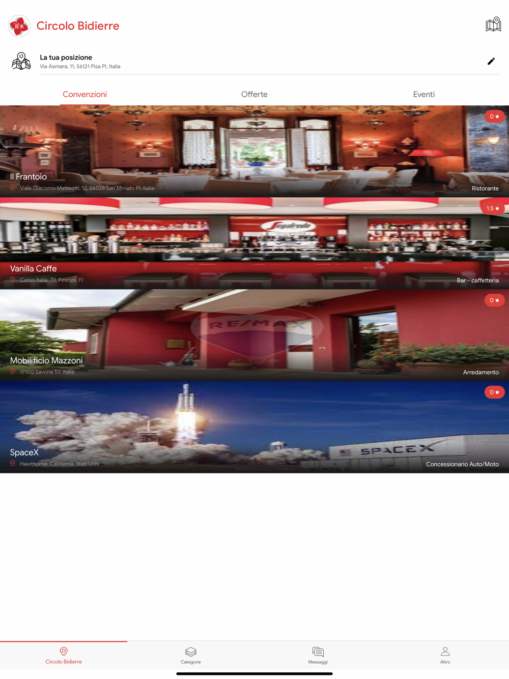 Un Mondo di Opportunità. Viaggi, Convenzioni, Assicurazioni, Salute, Tempo libero,Cultura, Eventi, Tecnologia, Mobilità sostenibile, Formazione, Welfare. Il Circolo BDR,da oltre 60 anni punto di riferimento associativo per i dipendenti del settore bancario,apre al pubblico offrendo servizi e attività anche ai non associati.Attraverso l’App potrai essere sempre aggiornato su offerte e iniziative in corso e sulleattività associative organizzate dalle varie sezioni del Circolo (turistiche, sportive,culturali, ricreative, solidali). Grazie allo shop potrai acquistare prodotti e servizidirettamente dall’App. Puoi consultare la tua posizione associativa e accedere allostorico dei pagamenti. Potrai associarti, se non l’hai ancora fatto, ampliando così lagamma delle opportunità a te riservate. Tutto con un semplice click.