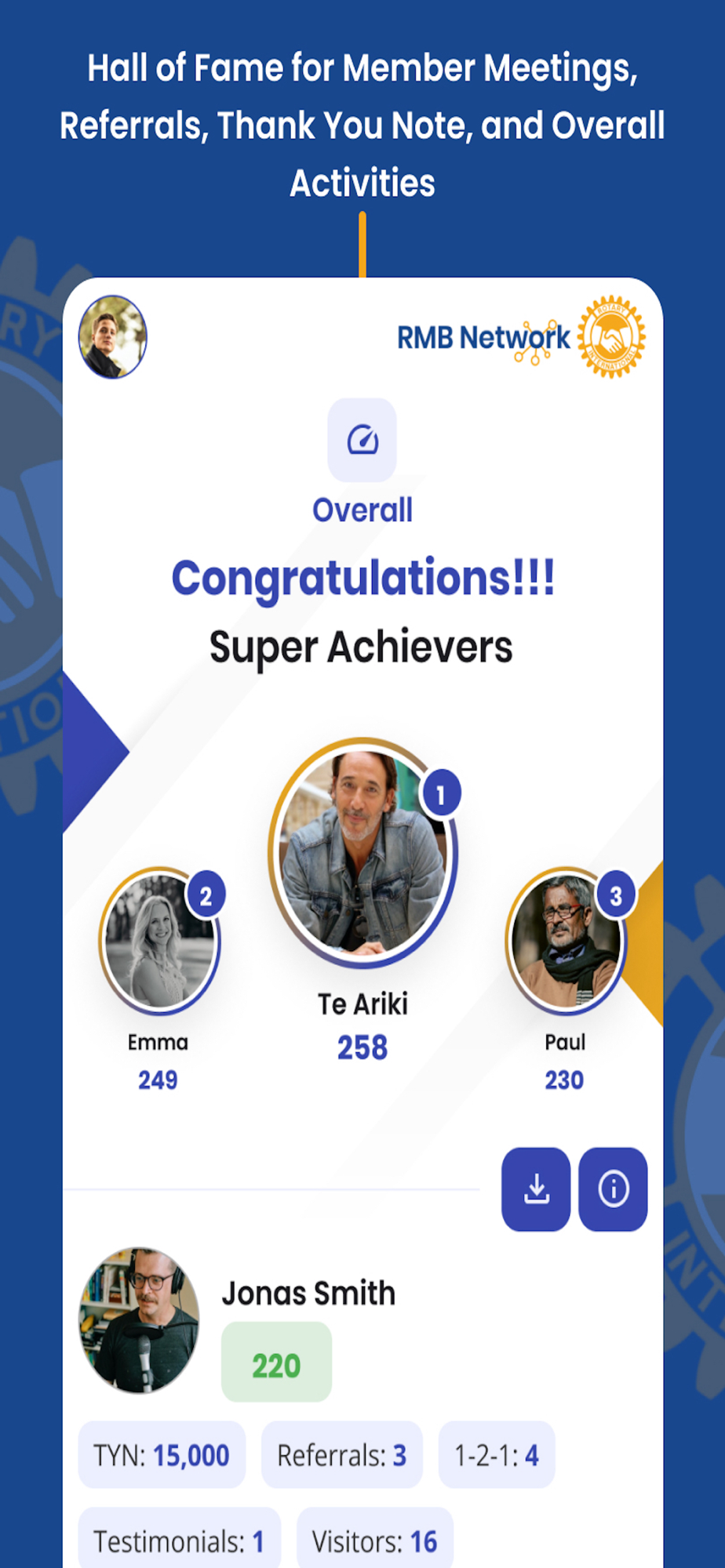 RMB Network is a versatile mobile app that facilitates easy networking, fellowship and referral passing among the members of Rotary Means Business (RMB). The application features member directory, ability to add activities, score computation and data analytics. RMB is a fellowship and networking group started by Rotary International.