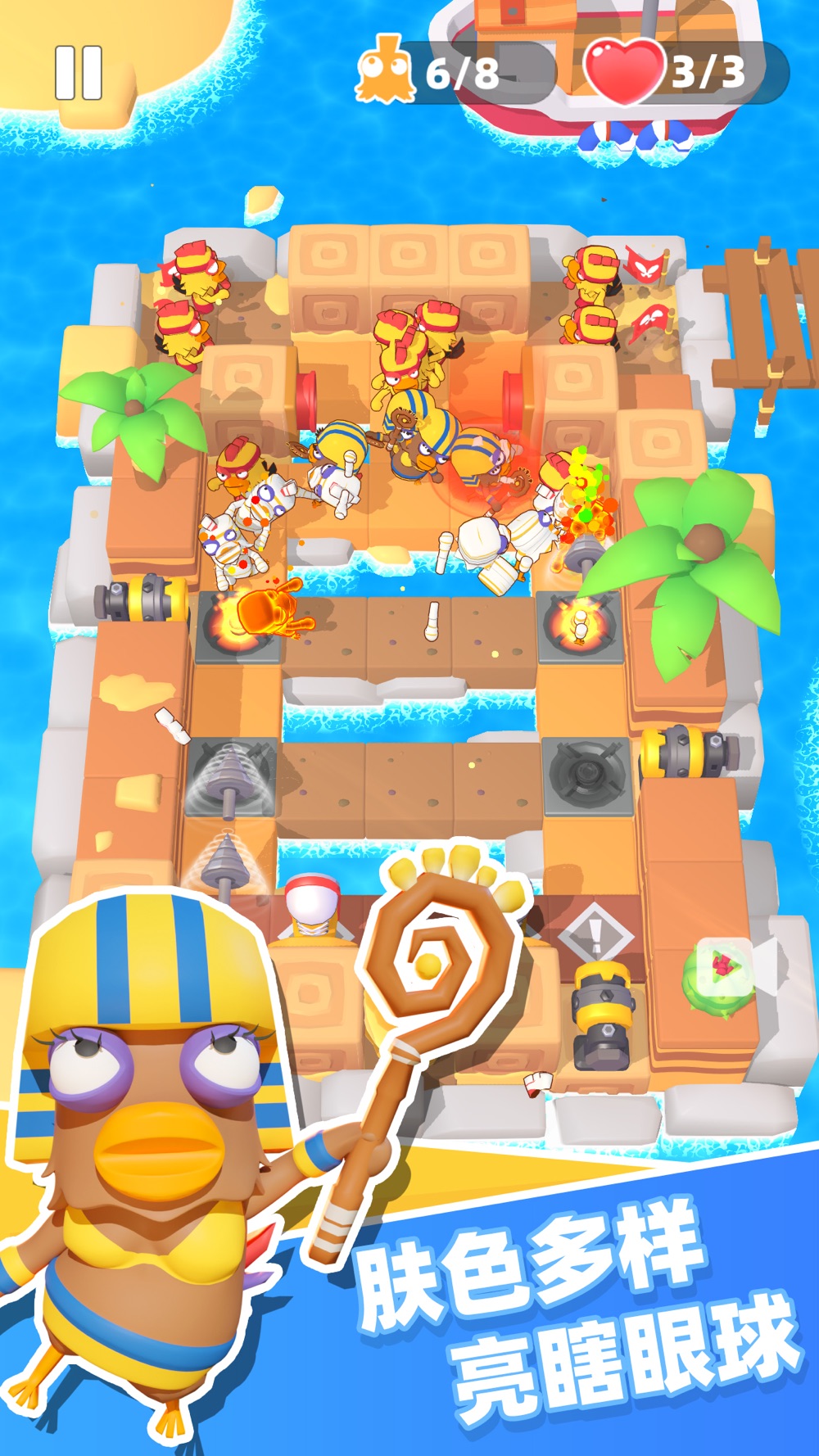 位移陷阱的辅助可以让小鸡们左右为难、反复横跳;攻击陷阱的组合也能让小鸡们寸步难行,搞怪百出。两相配合,让你尽享塔防的乐趣!