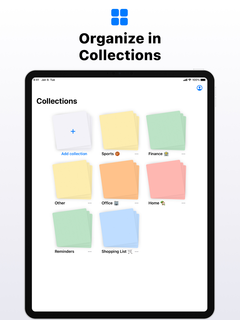 - Gestures: Use simple drag and drop gestures to move tasks between the subcollections or to reorder them.