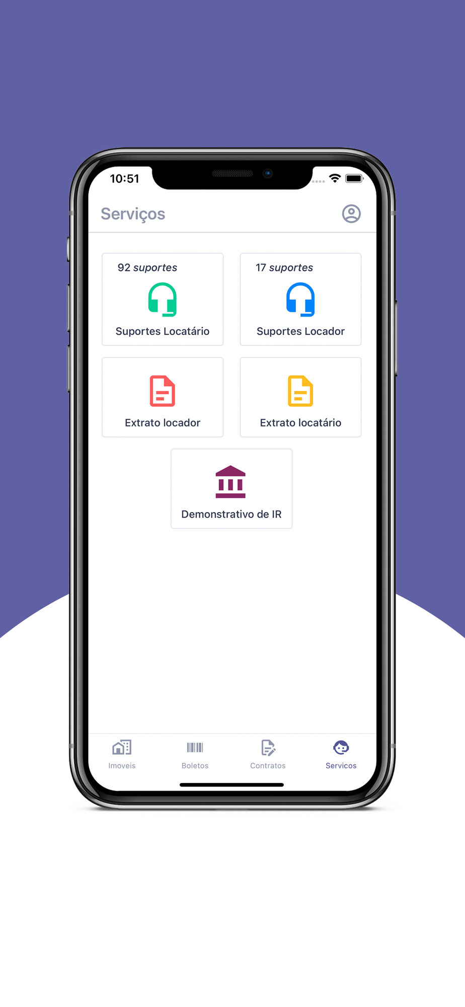 De forma simples e eficiente, é possível acessar os contratos dos imóveis, verificar a movimentação financeira, baixar segunda via de boletos atualizados, solicitar serviços e acompanhar o andamento das solicitações.