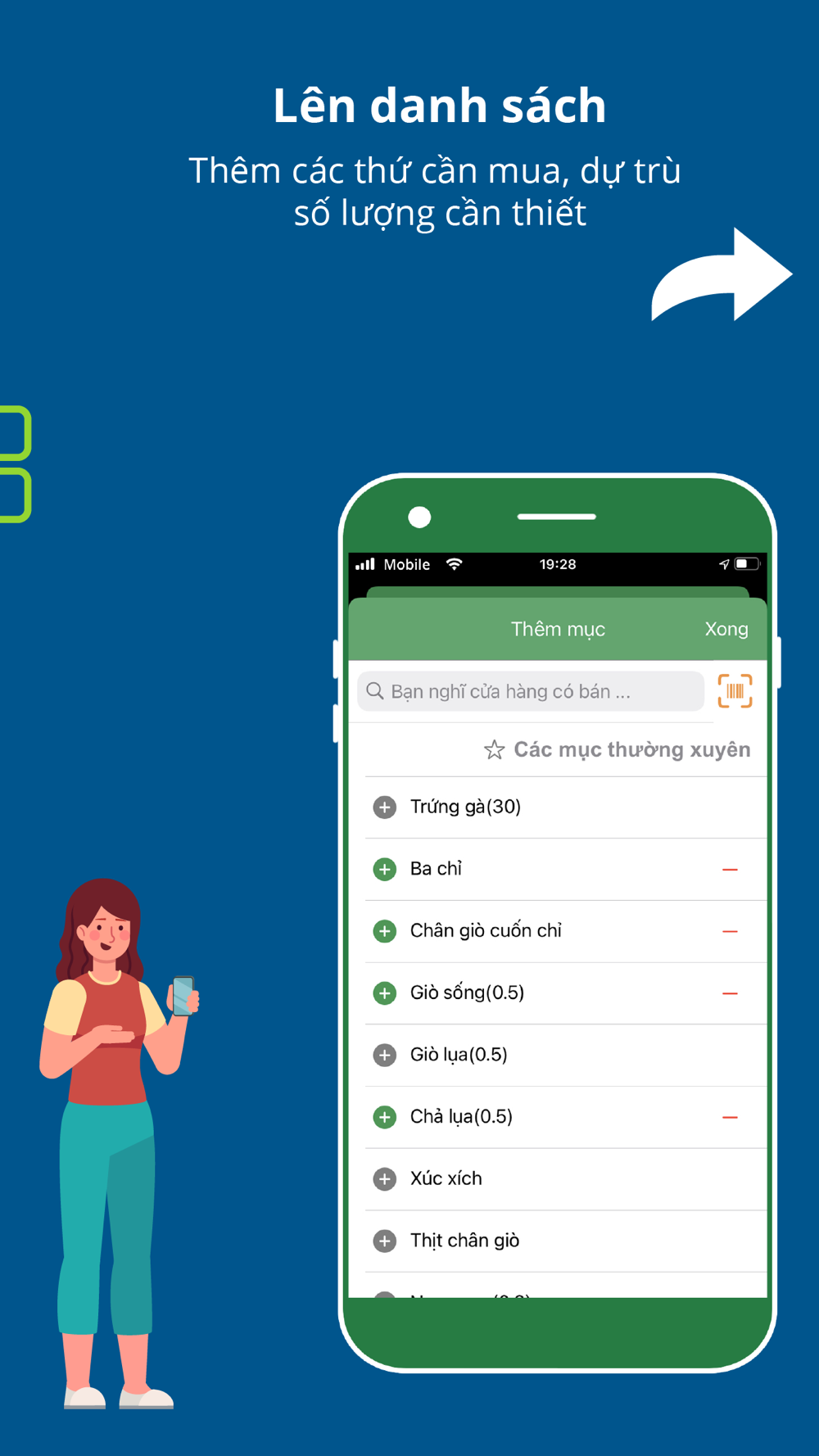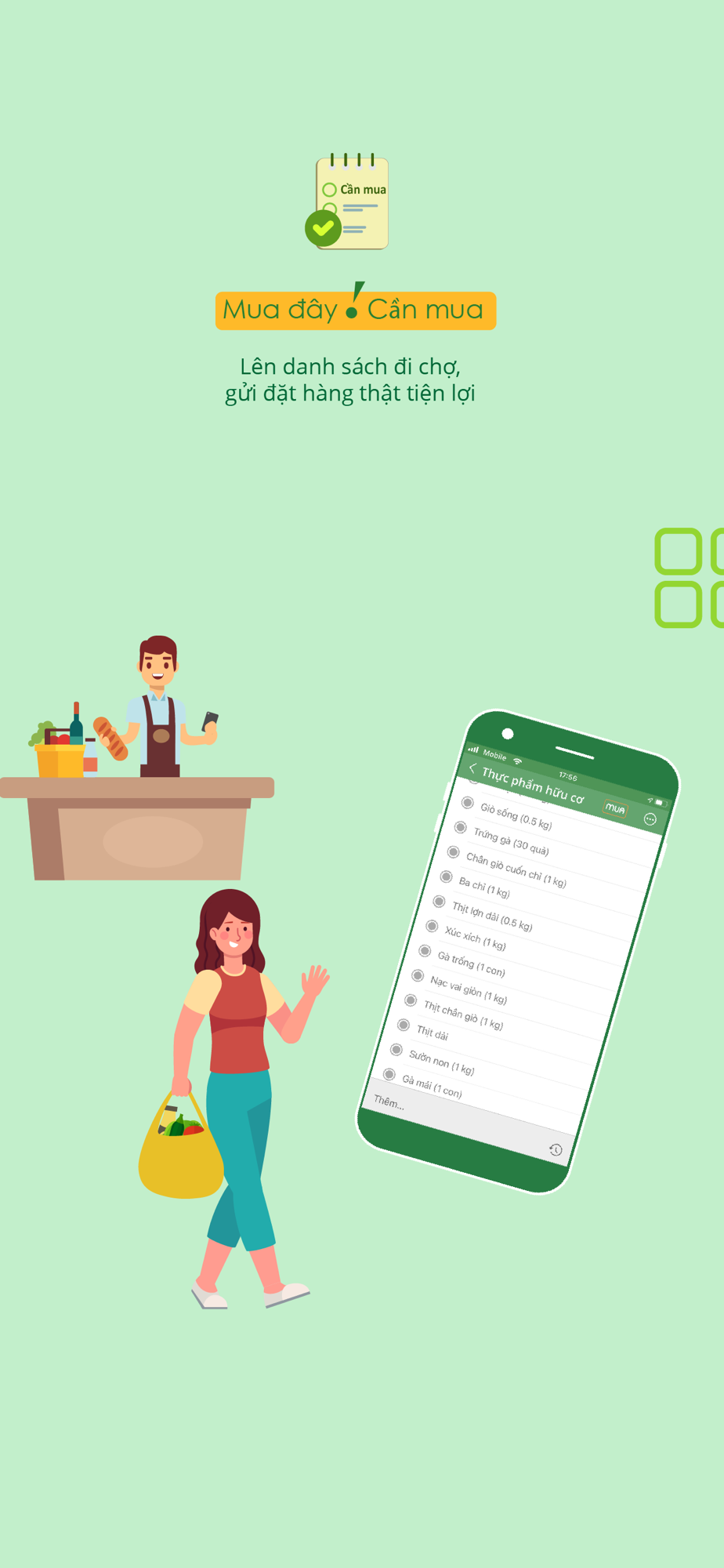 Mua đây! Ứng dụng giúp nội trợ lên danh sách cần mua khi đi chợ và gửi đặt hàng. Nhờ vậy, bạn không bỏ sót thứ cần mua mỗi lần đi chợ hay đặt hàng online.