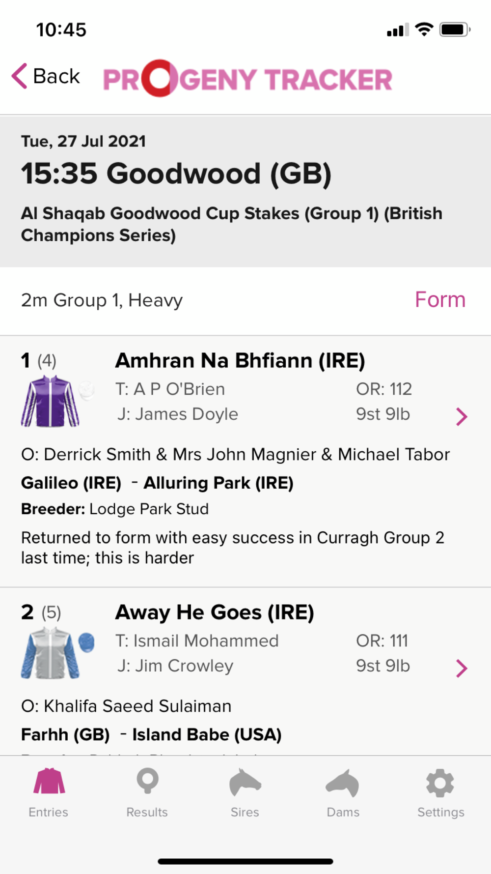 Progeny Tracker is the first horse tracker of its kind and brings a unique new product to the bloodstock industry. The Progeny Tracker allows you to track unnamed horses by tracking any sire and dam in the world. The app notifies you of any runners by your tracked sires/dams and full racecards are visible within the app, along with in-depth horse profiles detailing race record and pedigree. The app also brings you sales information for all progeny of your tracked sires/dams. The app is perfect for tracking young horses sold at the sales (by tracking the dams) and for keeping up-to-date with the progress of first season sires, and much more. The Progeny Tracker app is brought to you by Racing Post Bloodstock and sponsored by Goffs.