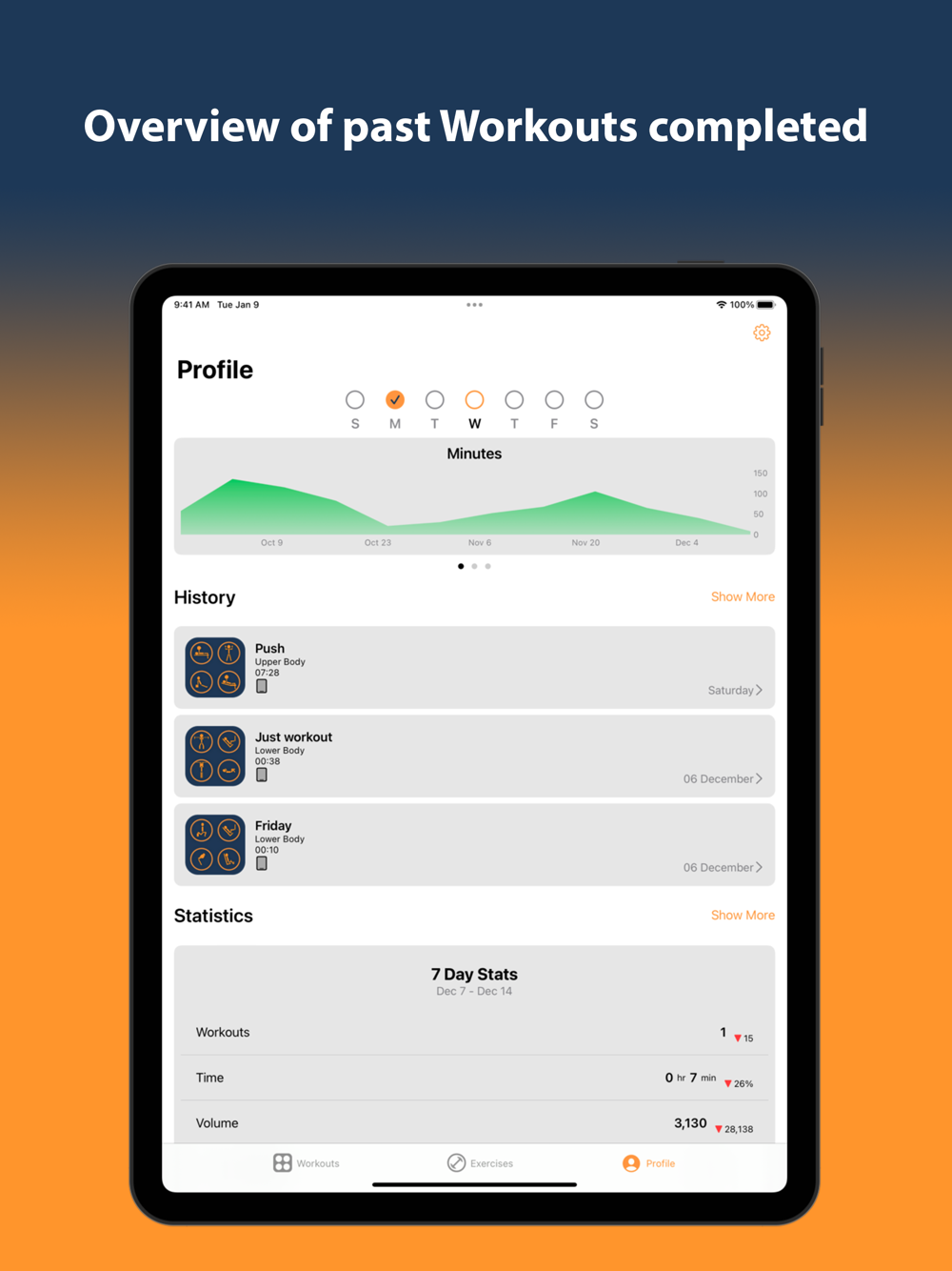 Gymple is designed for working out in the gym or at home. Giving you the choice of following a created workout, or 'Just workout' and add exercises on the fly. Gymple offers statistics over the last 7, 30 and 90 days, in addition to finer-grain detailed statistics on a per-exercise level.