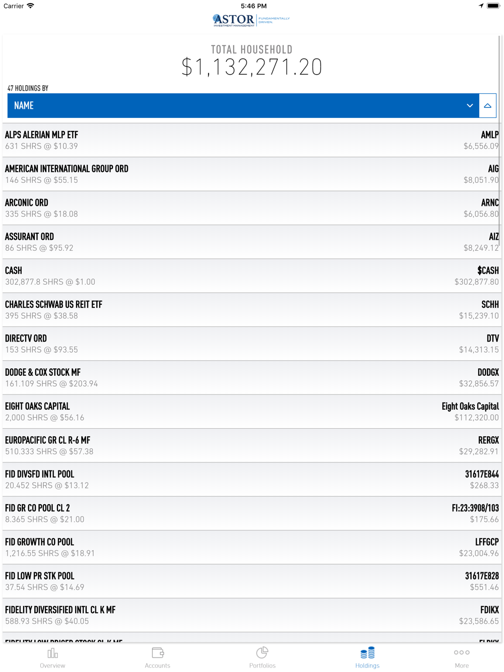 • Search within your clients and see a consolidated view of accounts, portfolios, and holdings