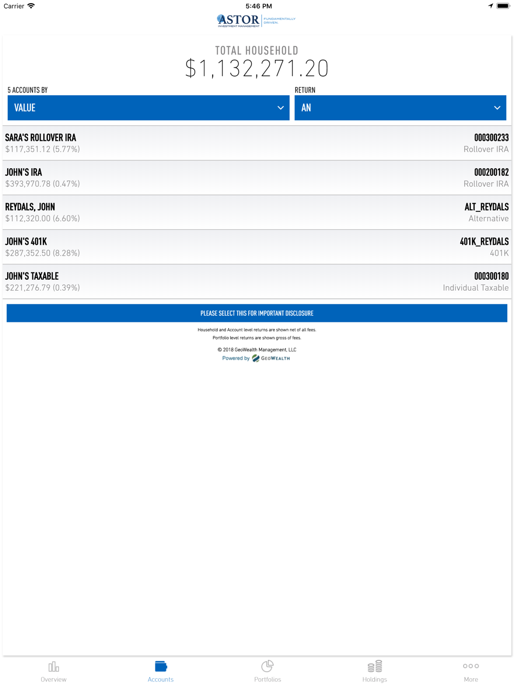 Astor Investments mobile app provides greater visibility into both clients' overall financial picture and Astor Investments' wealth advisory services.