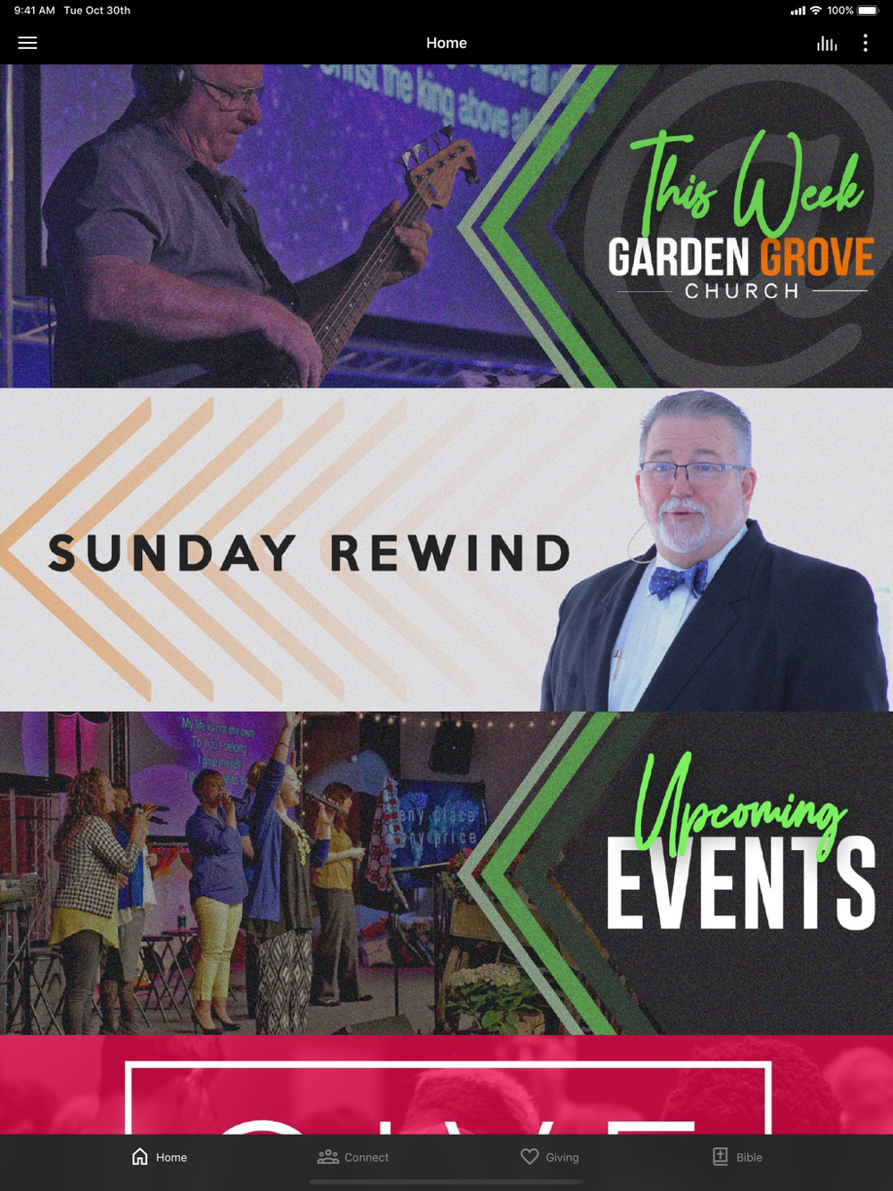 This app will help you stay connected with the day-to-day life of our church. With this app you can: watch or listen to past messages; stay up to date with notifications; see upcoming service and event info; and share your favorite messages via Instagram, Facebook, or email.