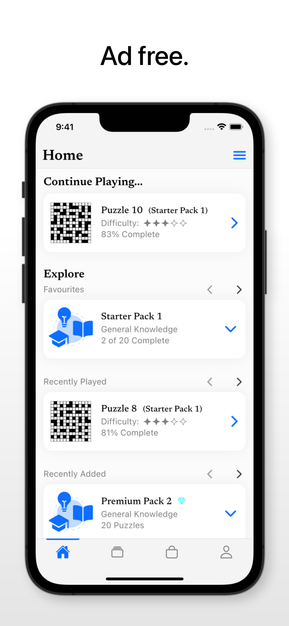 - Original crosswords of varying difficulty levels.