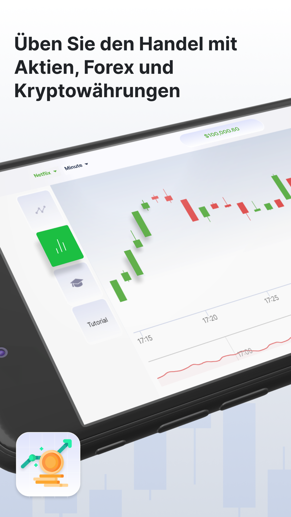 + Live-Börsen-Handelssimulator + Kostenloser virtueller Handel $100.000