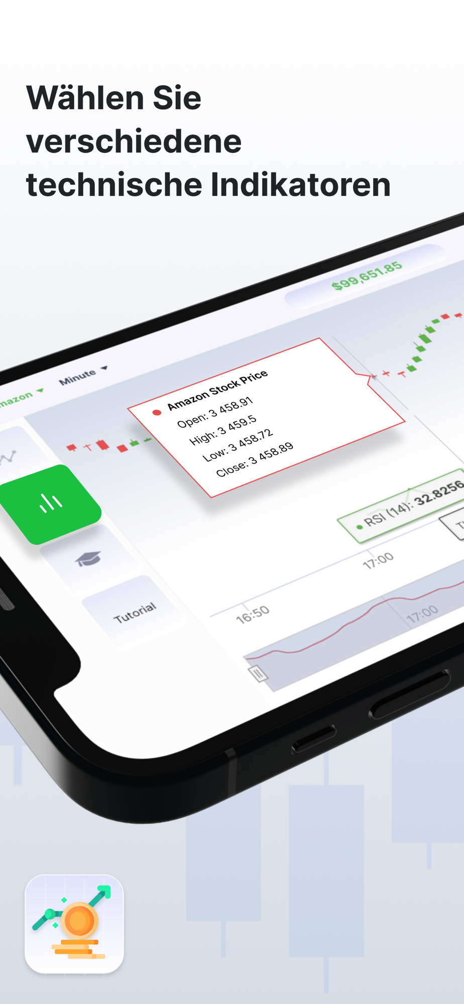 Haftungsausschluss: Diese App dient als Aktien-Grundlagen-Kurs und lehrt Ihnen die Grundlagen des Börsen-, Devisen- und Kryptowährungshandelns mit Differenzkontrakten. Die in der App angezeigten Aktienkurse haben eine leichte Verzögerung.