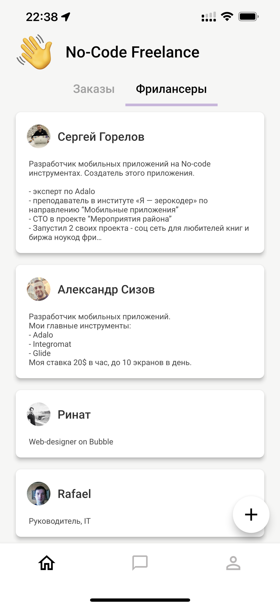 Фриланс биржа с лучшими no-code специалистами со всей страны. Запускайте и тестируйте идеи с минимальными вложениями, в этом вам помогут no-code инструменты и лучшие специалисты своего дела.