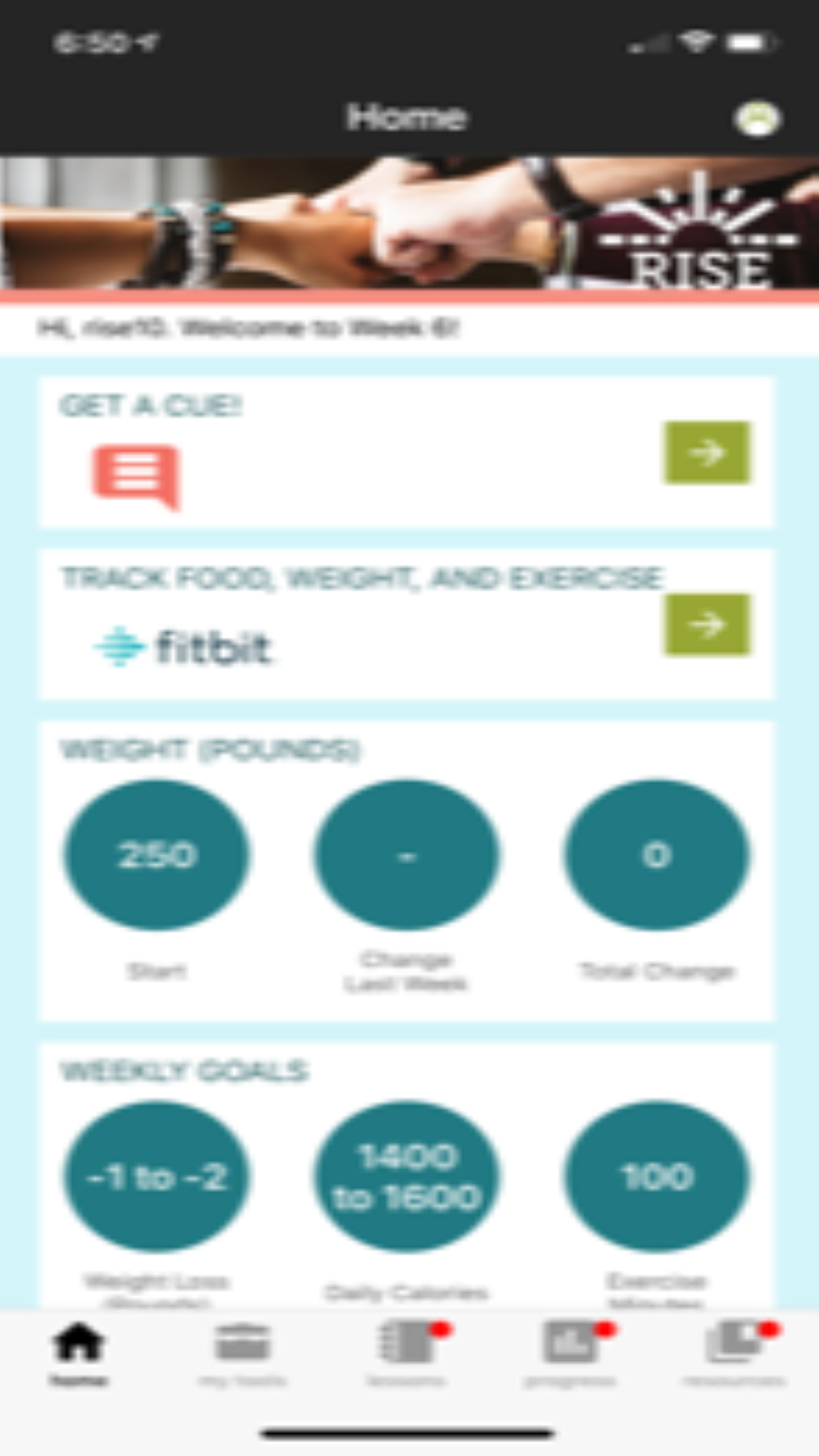 RISE is a wellness app designed with innovative ways to help people lose weight. The 52-week program focuses on healthy eating, exercise, and behavior change with personalized feedback and motivational tools. RISE includes multimedia lessons, recipes, resources, and social support. Users connect their Fitbit account to RISE. HealthKit is integrated with RISE to allow access to users’ health data such as weight, exercise, and nutrition from Fitbit and allow for weekly tailored progress graphs. Users do not directly interact with the HealthKit app and are made aware that their data is being collected through the application with the provision to opt-out.