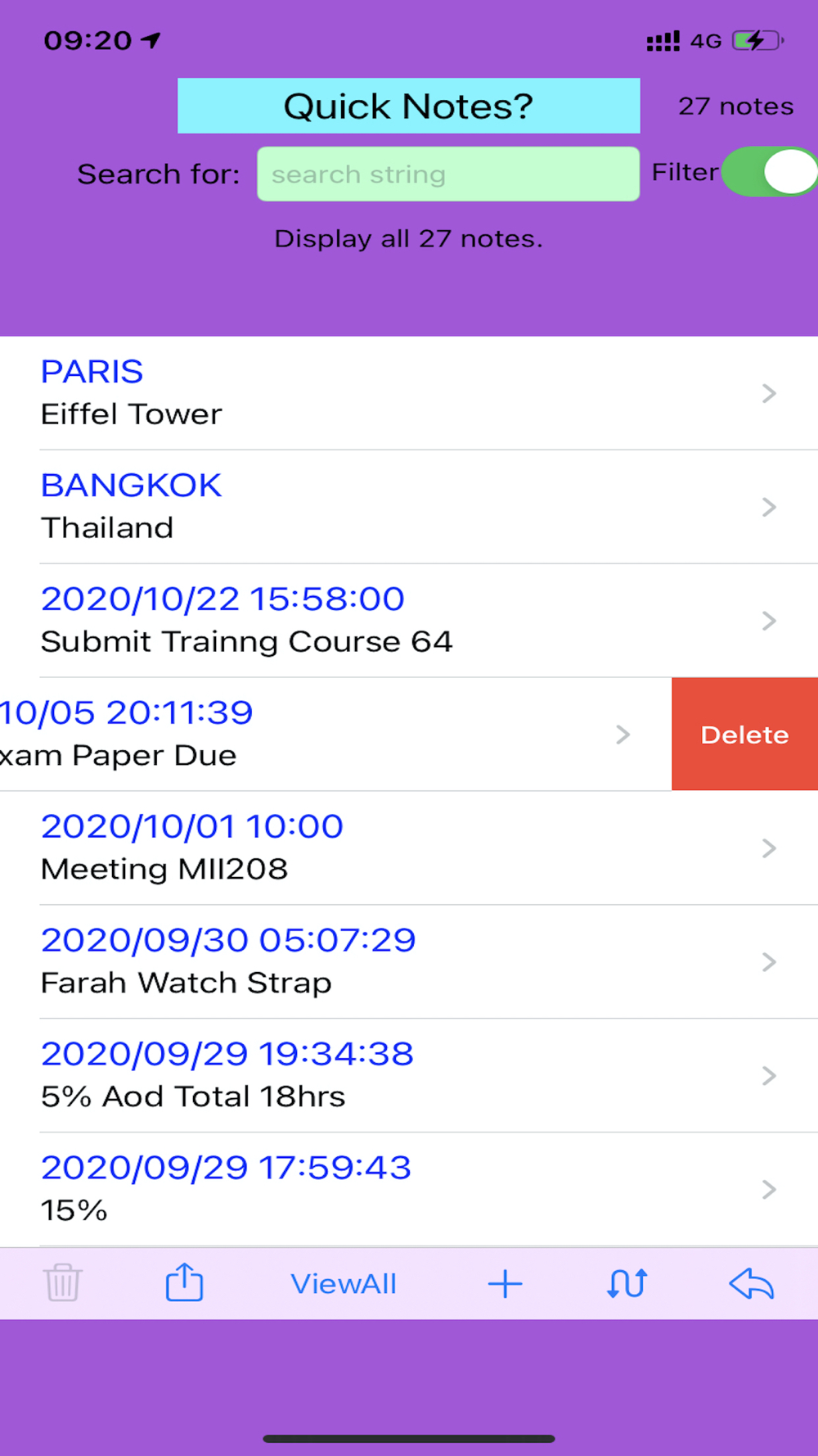 Tap ViewAll button to display all notes in tableview.