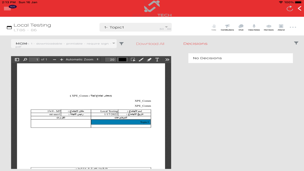 * التحكم فى إعدادات الاجتماع من خلال رئيس الاجتماع