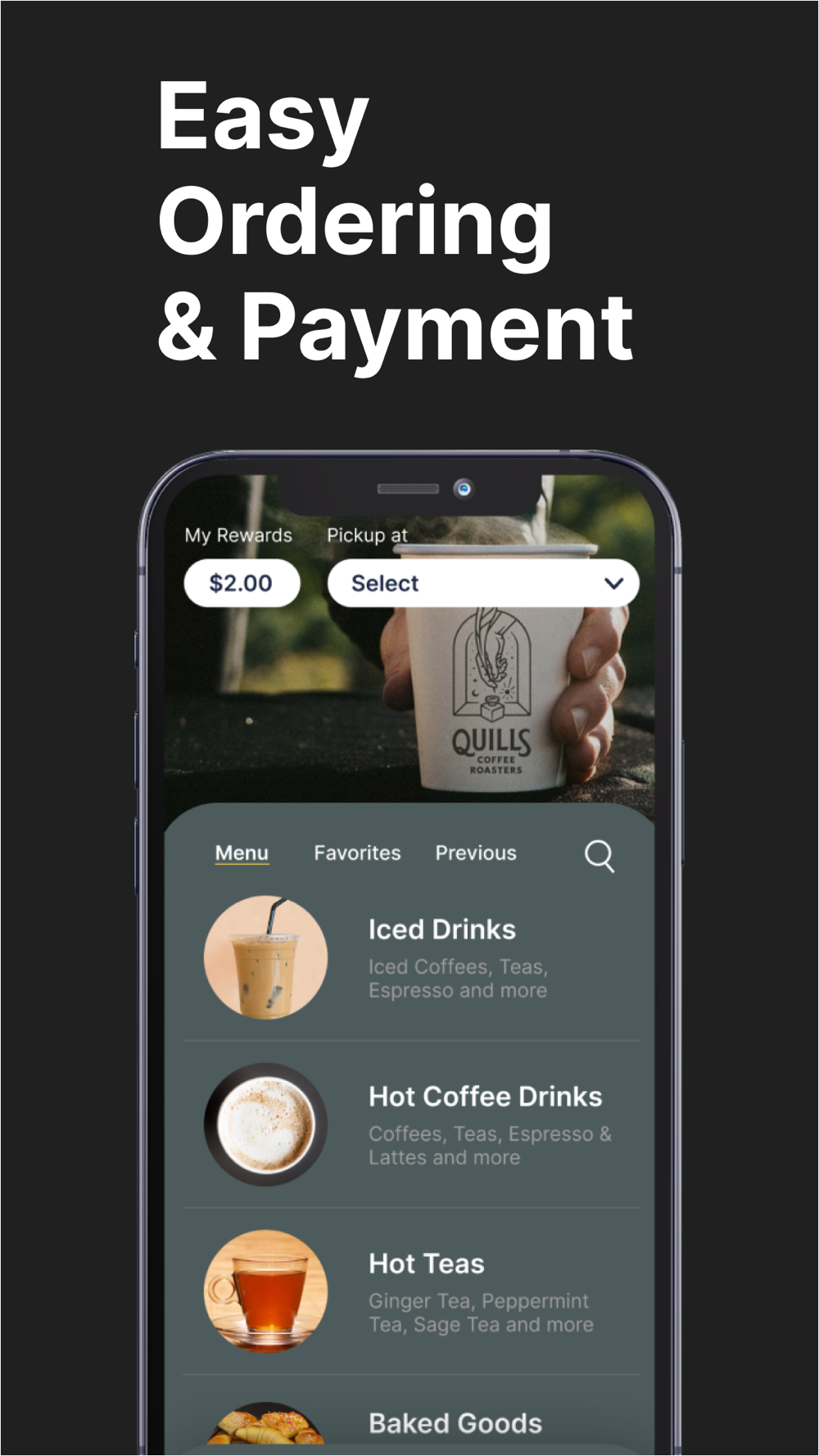 The Quills Coffee app allows customers to easily order ahead and receive great rewards.