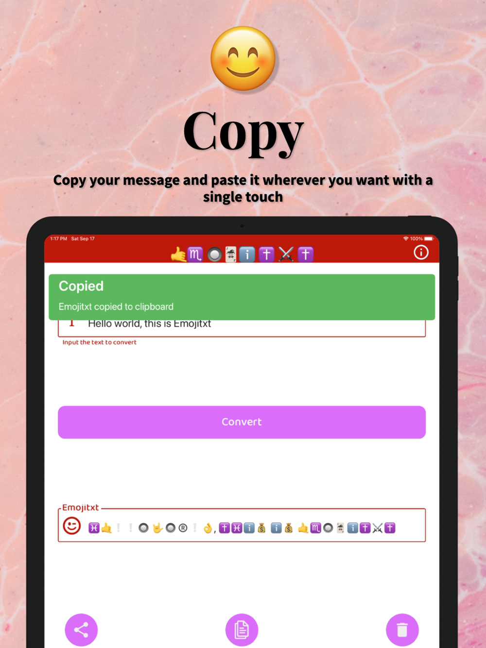 You can share the message you created directly on your social networks or copy it so that you can paste it wherever you want.