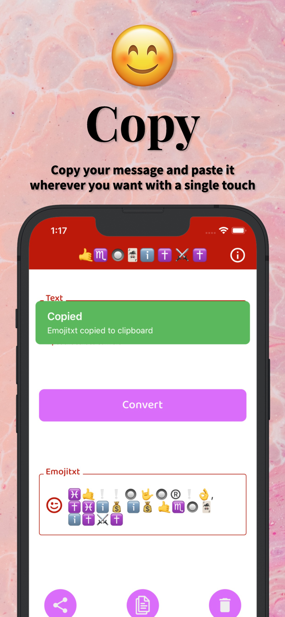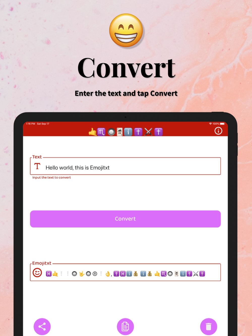 Emojitxt is an application that will allow you to convert alphanumeric text into emojis, replacing the letter, number, punctuation mark or symbol that you can type with your keyboard for an emoji that is similar in shape.
