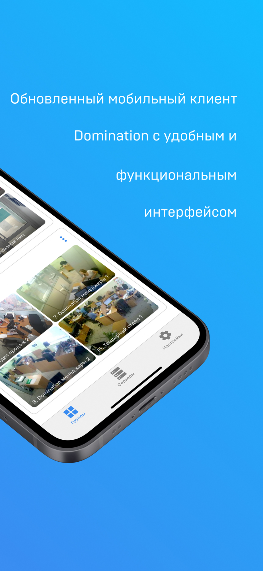 Приложение Domination Client предназначено для просмотра видео с камер, подключенных к видеосерверам Domination.