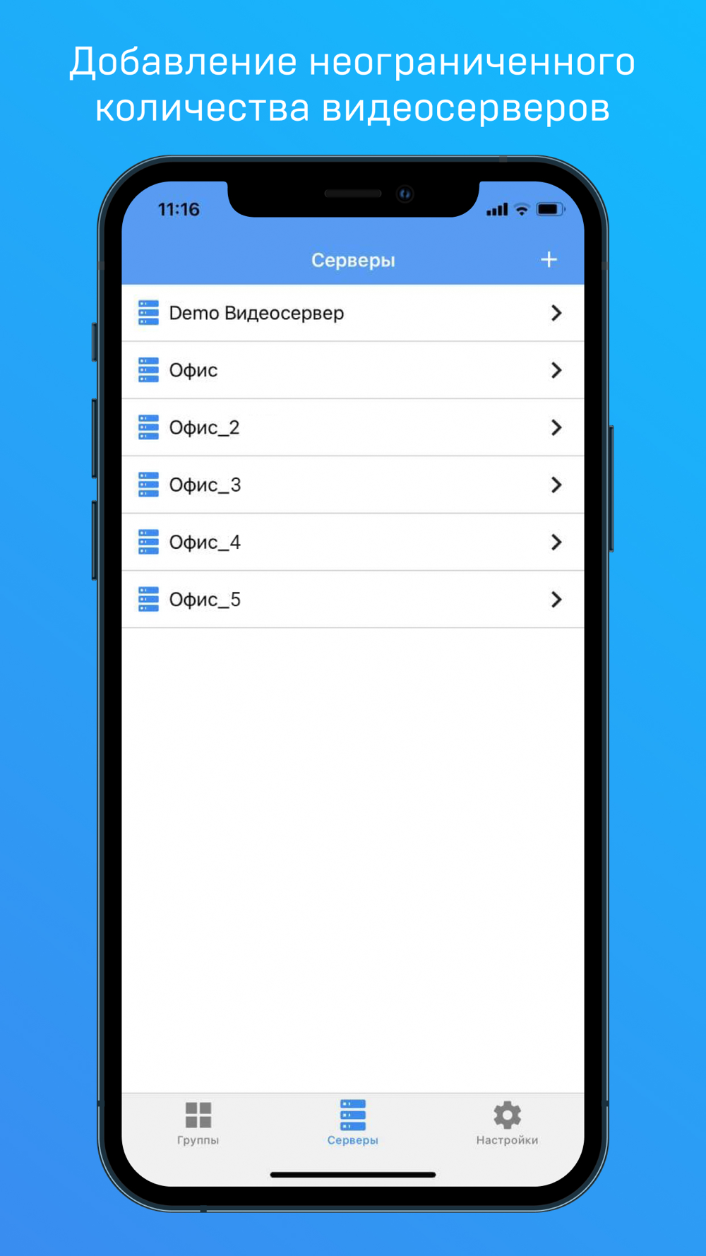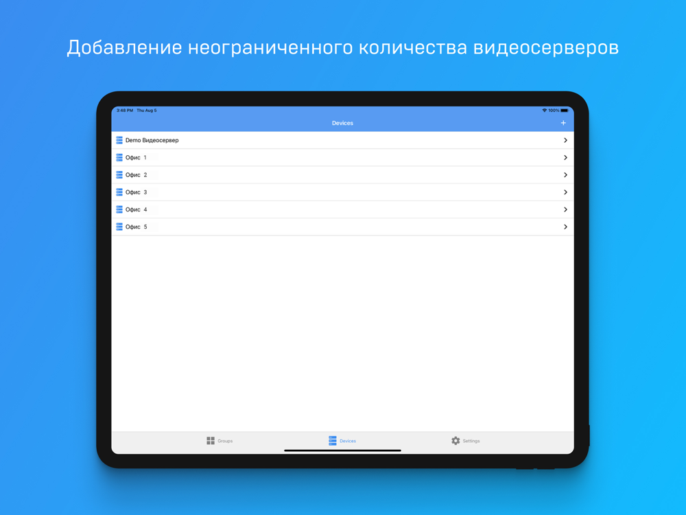 - Подключение неограниченное количество видеосерверов.