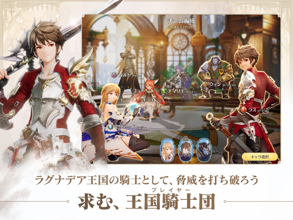 魅力あふれる騎士団のメンバーたちから3人を選んで、メンバーを切り替える「タッグバトル」や、残りの2人を指揮しながら協力する「チームバトル」で戦おう!