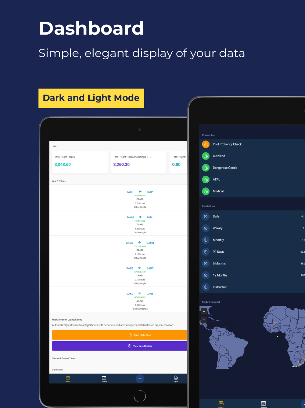 - flight timer with automatic hour calculation, as well as automatic airport detection by location.