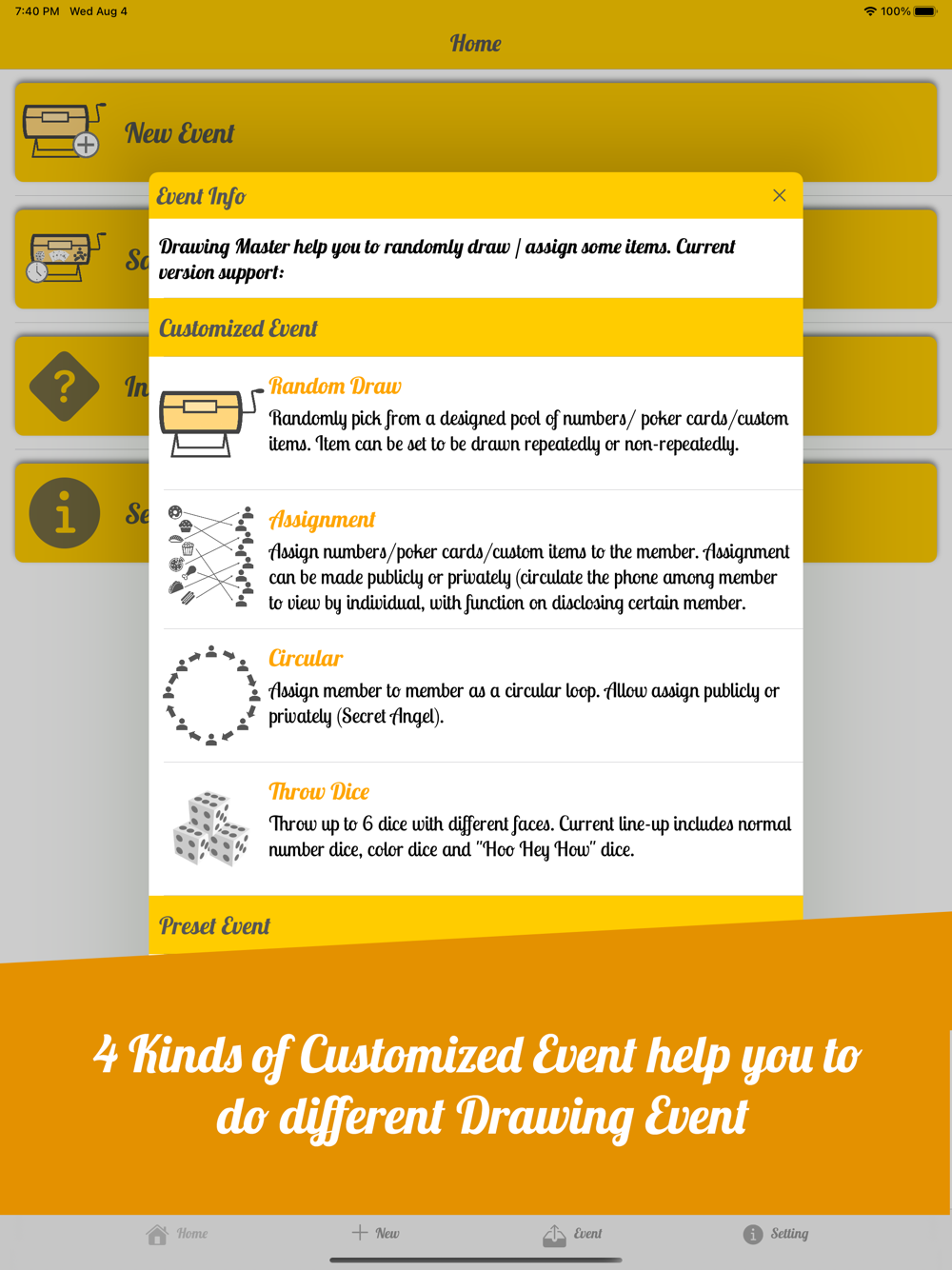 Lucky Draw Master help you to randomly draw / assign items. Current version support: