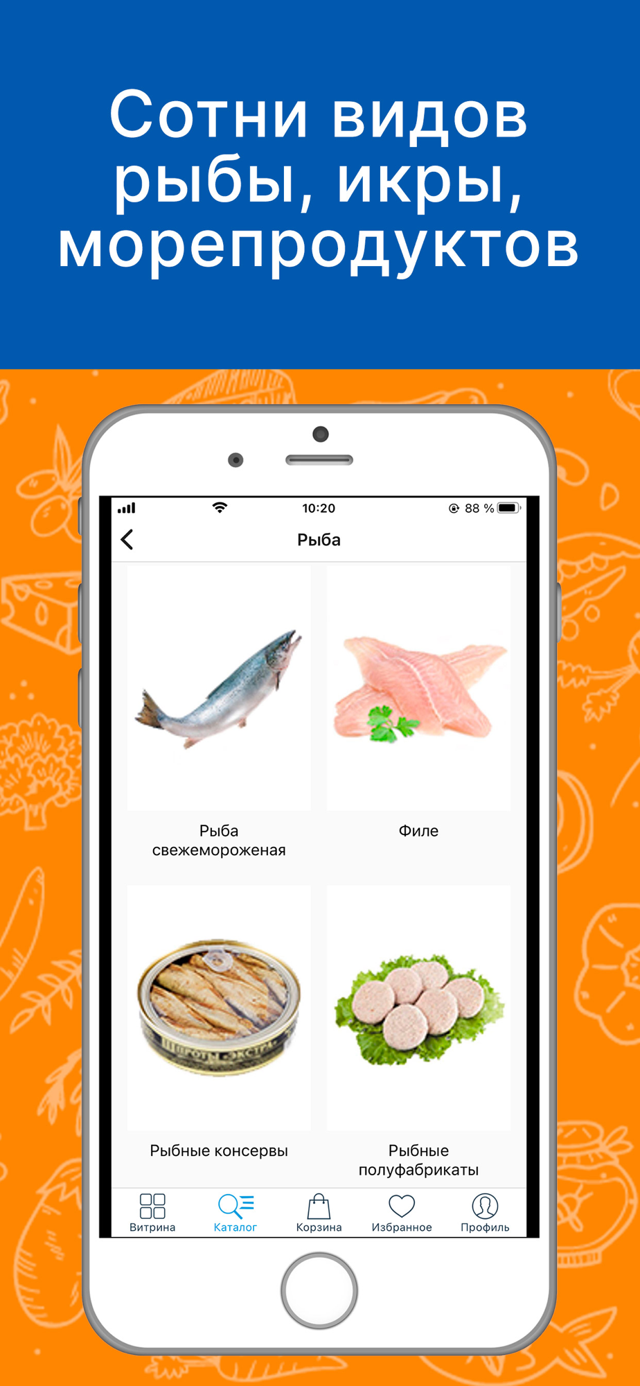 В нашем ассортименте - более 300 видов рыбы и морепродуктов самого высокого качества, икра, замороженные мясо и птица, большой выбор замороженных овощей, фруктов и ягод, мясные и рыбные консервы, бакалея, товары для дома.