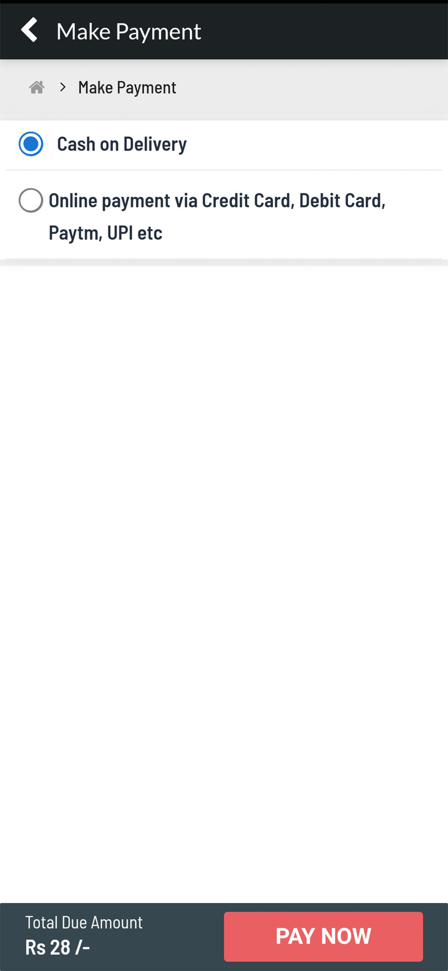 • Add items to cart, complete payment & check out.