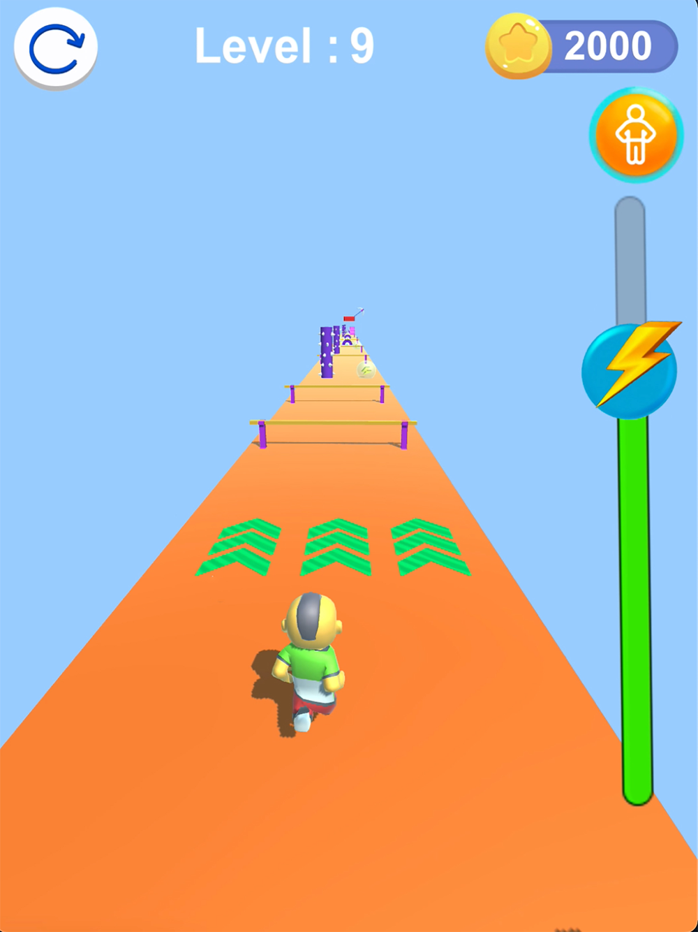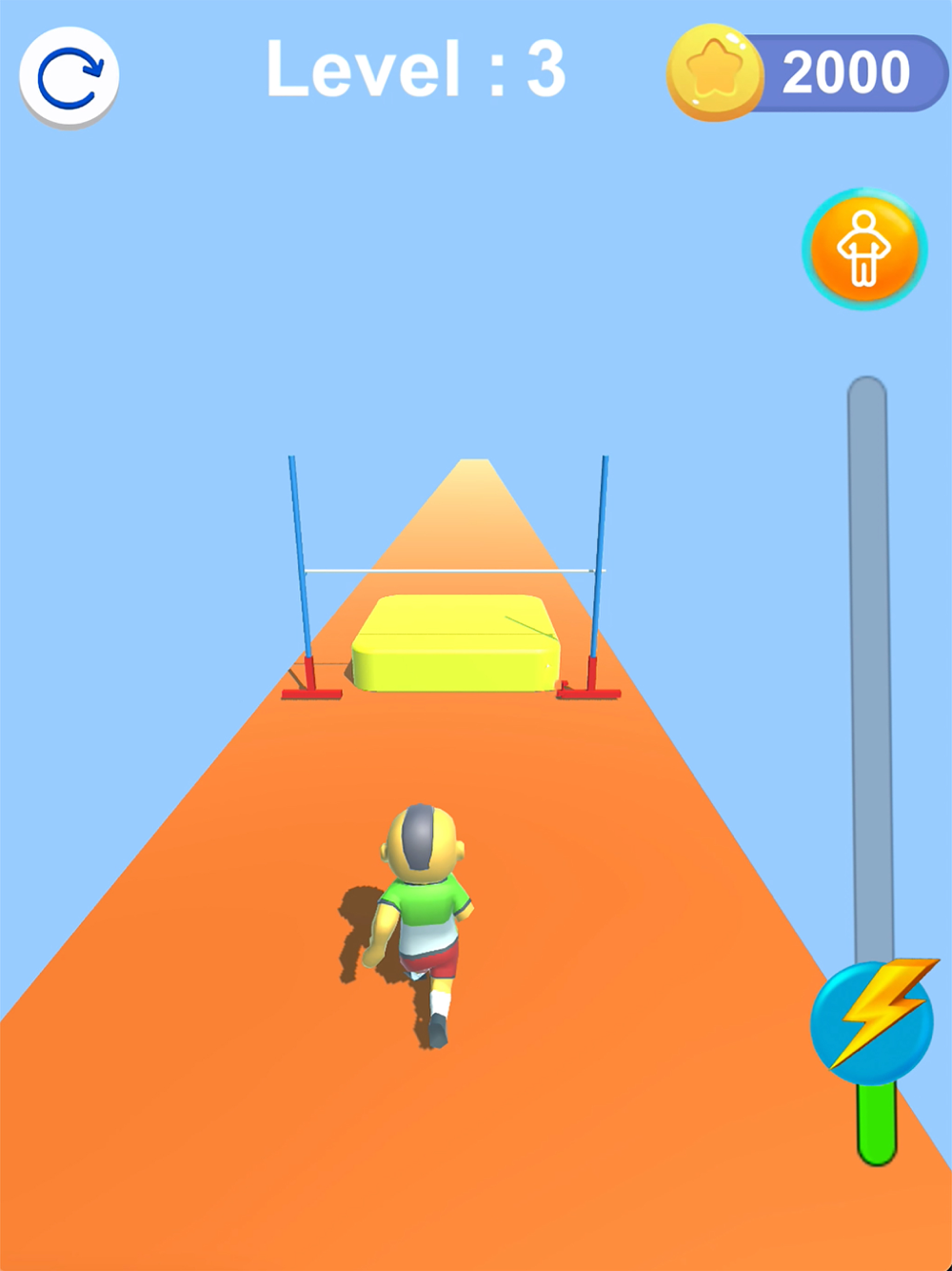 Move left, right and jump to avoid obstacles and eat energy option everything along the way to be stronger. Be careful, at the end of the journey you will face different challenges like long jump,height jump or pole vault ...