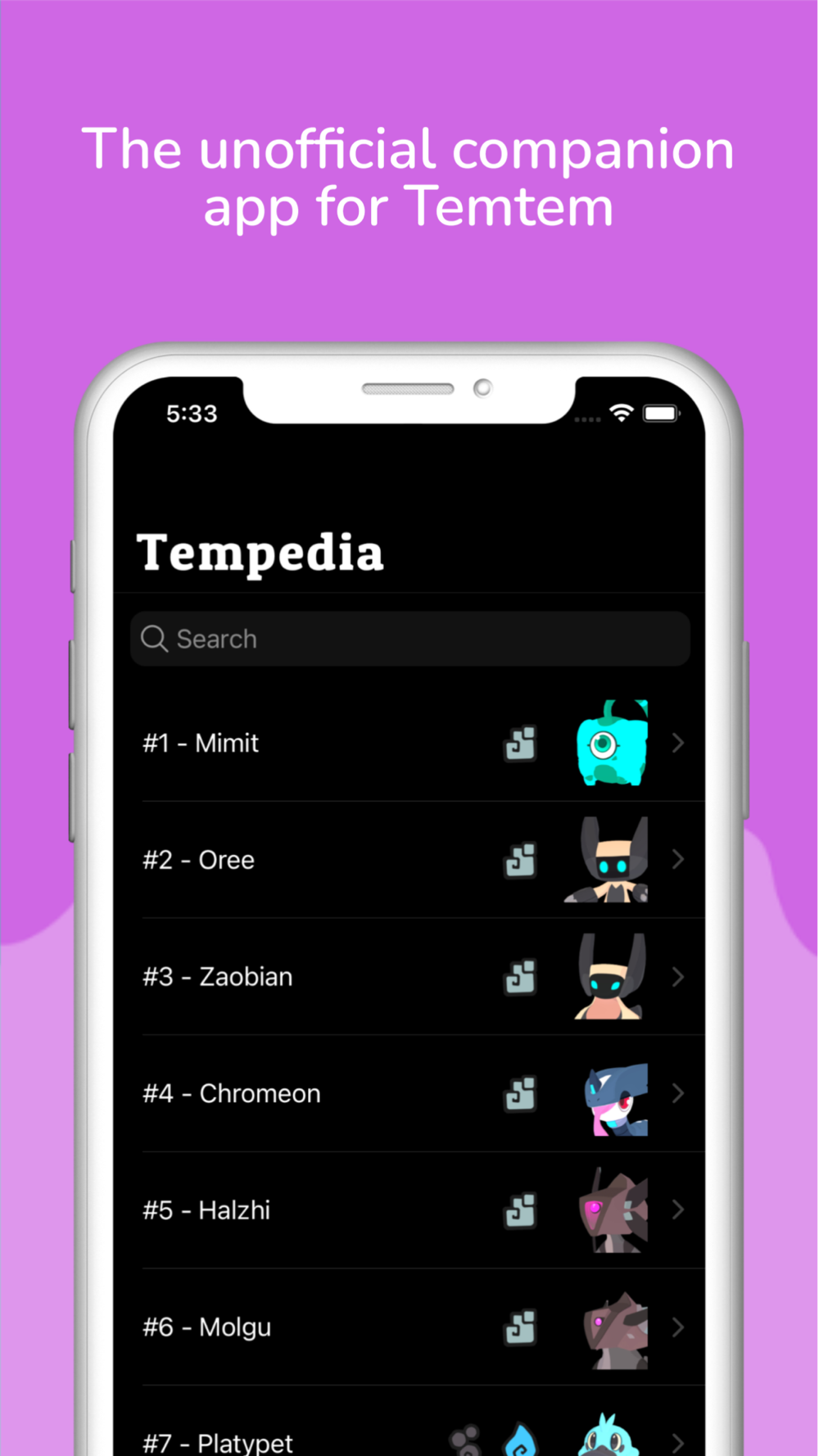 The ultimate companion to Temtem is now here! With a full Tempedia of all Temtem currently in the game (as of the Cipanku update), you can look up stats, techniques, types, weaknesses, and traits on the go! Temtem is coming out of Early Access soon to the Sony PlayStation 5, Nintendo Switch, and Steam on the PC.