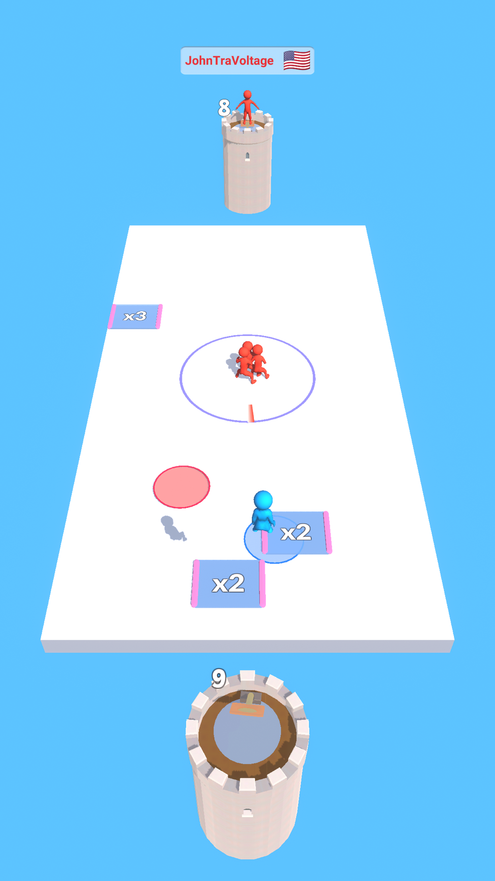 Aim with your catapult and shoot a fighter which can multiply with a ground target. Your fighters will fight for you and try to conquer the field.