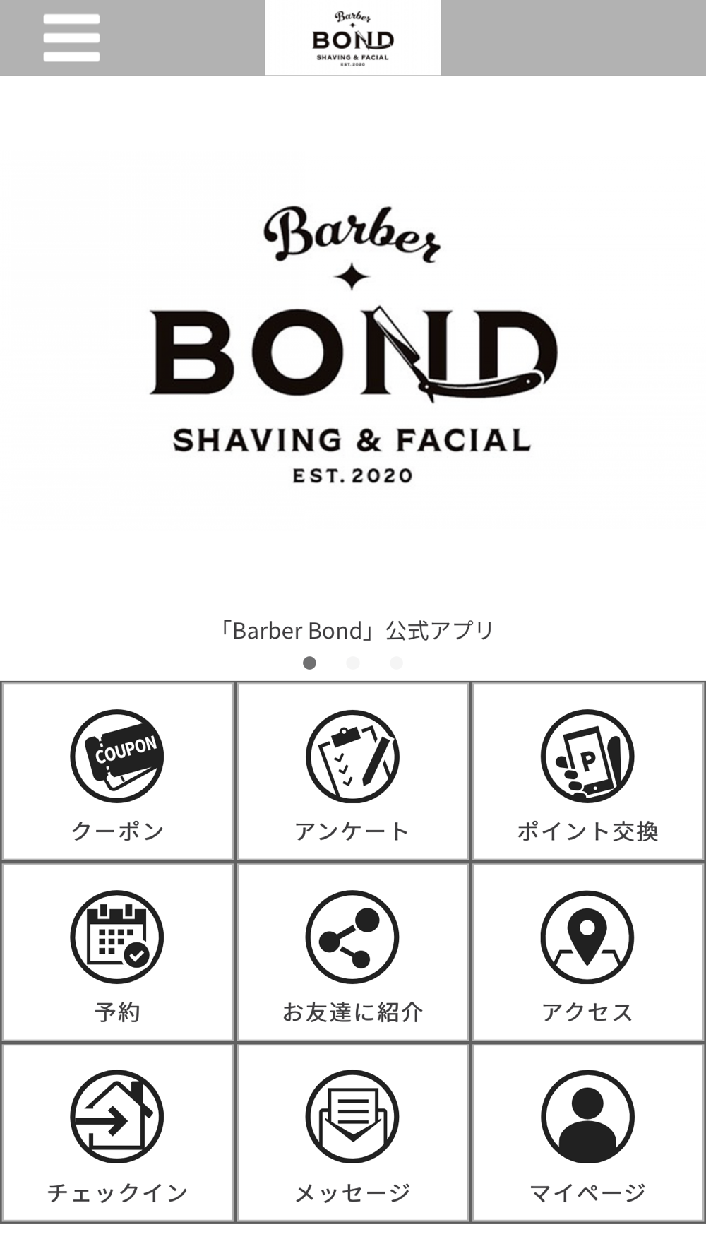 このアプリでは、Barber Bondの最新情報の受け取りや便利な機能を使う事ができます。