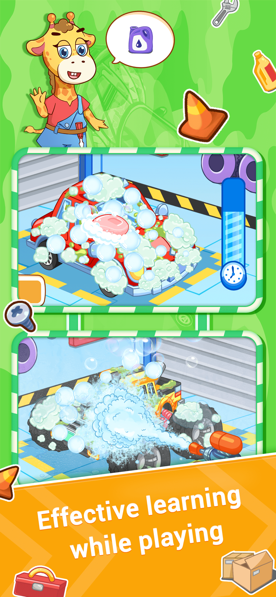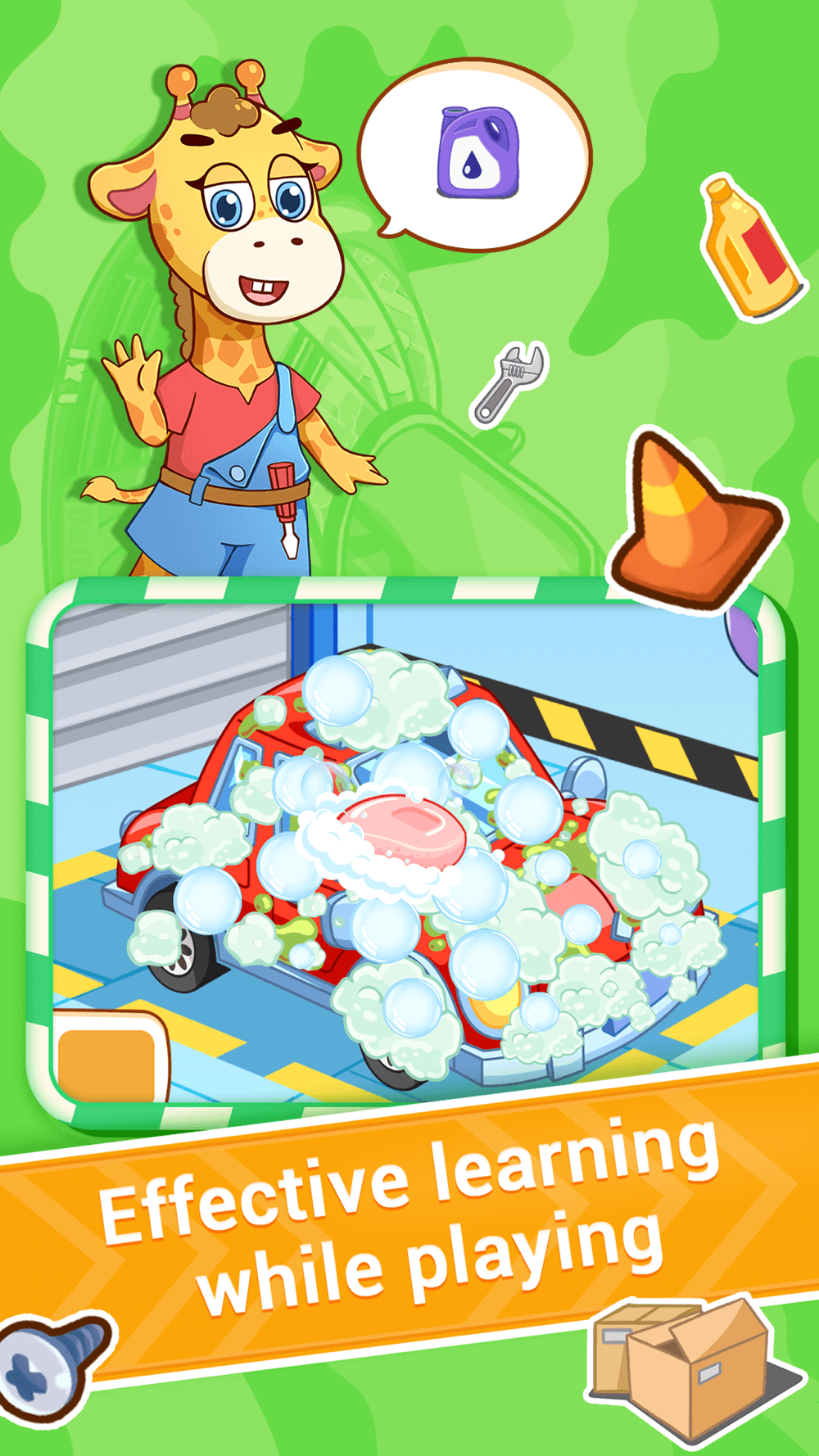 The game includes various types of cars, from a sedan, pickup, and jeep, to a sports car, vintage car, and sport utility vehicle, to help the baby learn more about cars. Whether a car needs repairs, maintenance, or cleaning, the baby will be able to find the perfect solution in this game with your intelligence!