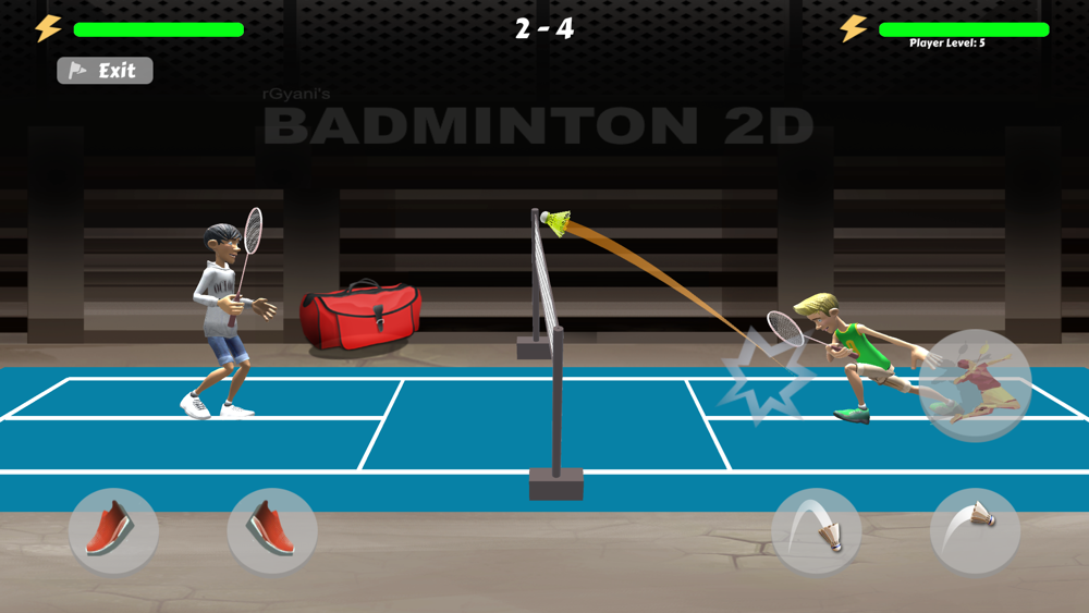 Enjoy this simple but fun action packed Badminton 2D game! From powerful jumping smashes to delicate tumbling net returns, long rallies to subtle strokes, Your goal is to deceive your opponent by forcing them to move as much as possible eventually tiring them out and unable to anticipate and reach your return